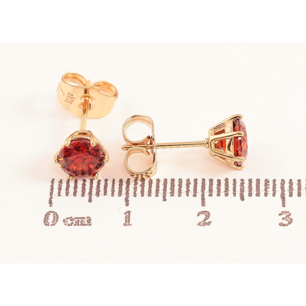 Серьги Xuping цвет Позолота 18К пусеты "Красные кристаллы в 6-ти крапановой оправе" ø 6мм