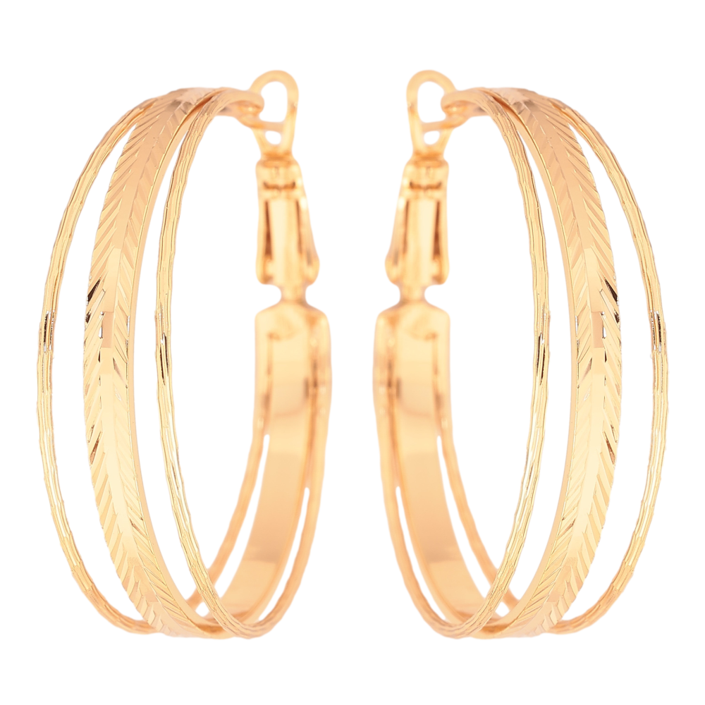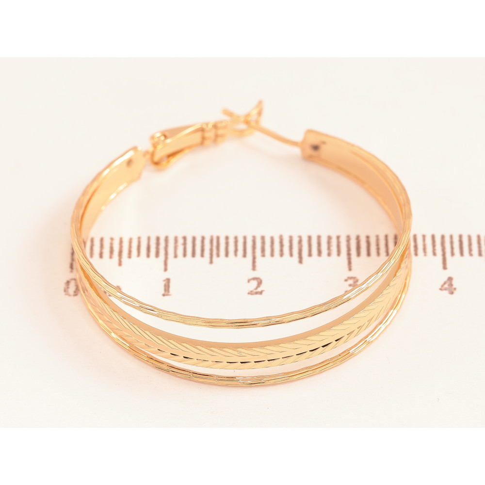 Серьги Xuping цвет Позолота 18K кольца (конго) "Тройные с узором" ø 3.5см