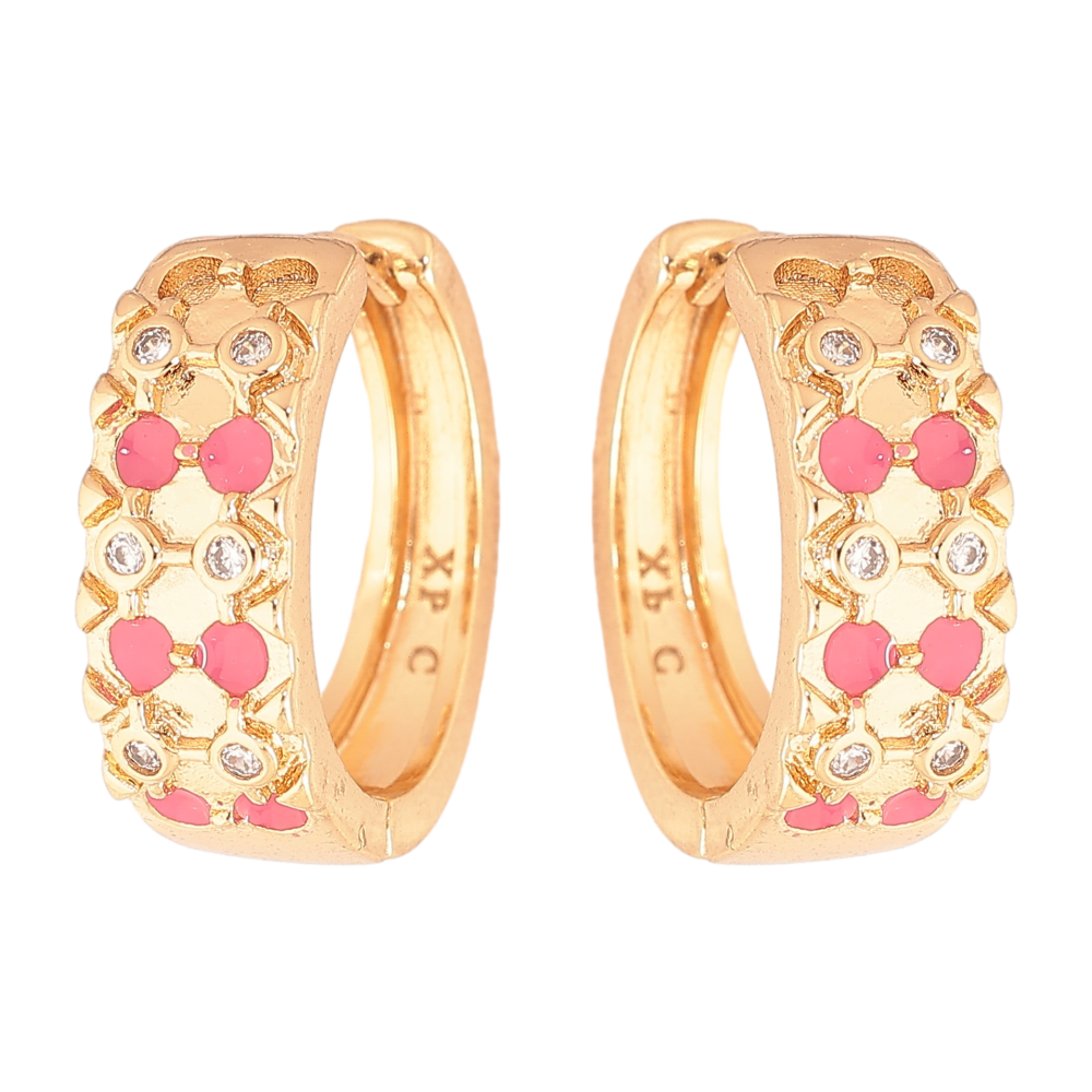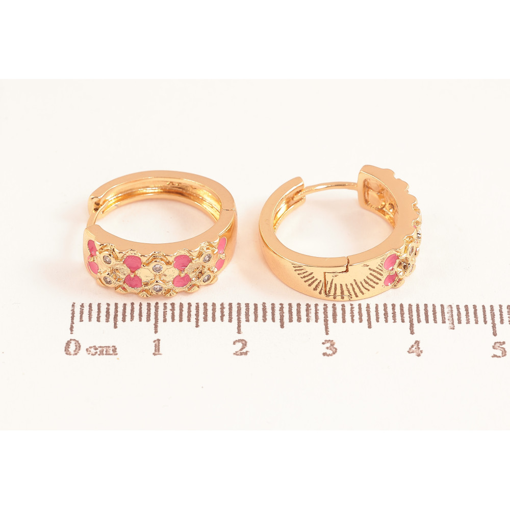 Серьги Xuping цвет Позолота 18К колечки "Узор с кристаллами и розовой эмалью"