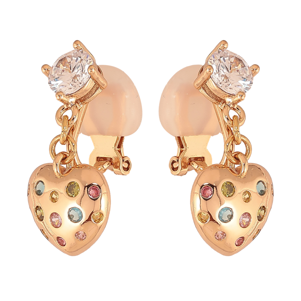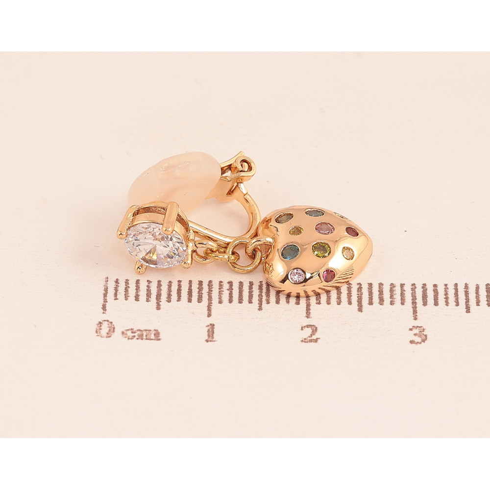 Серьги Xuping цвет Позолота 18К клипсы "Сердечки с цветными кристаллами"