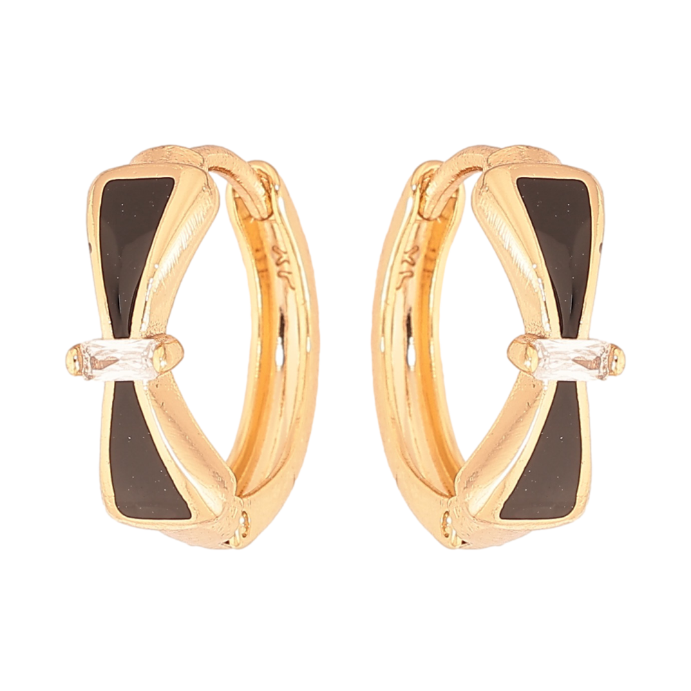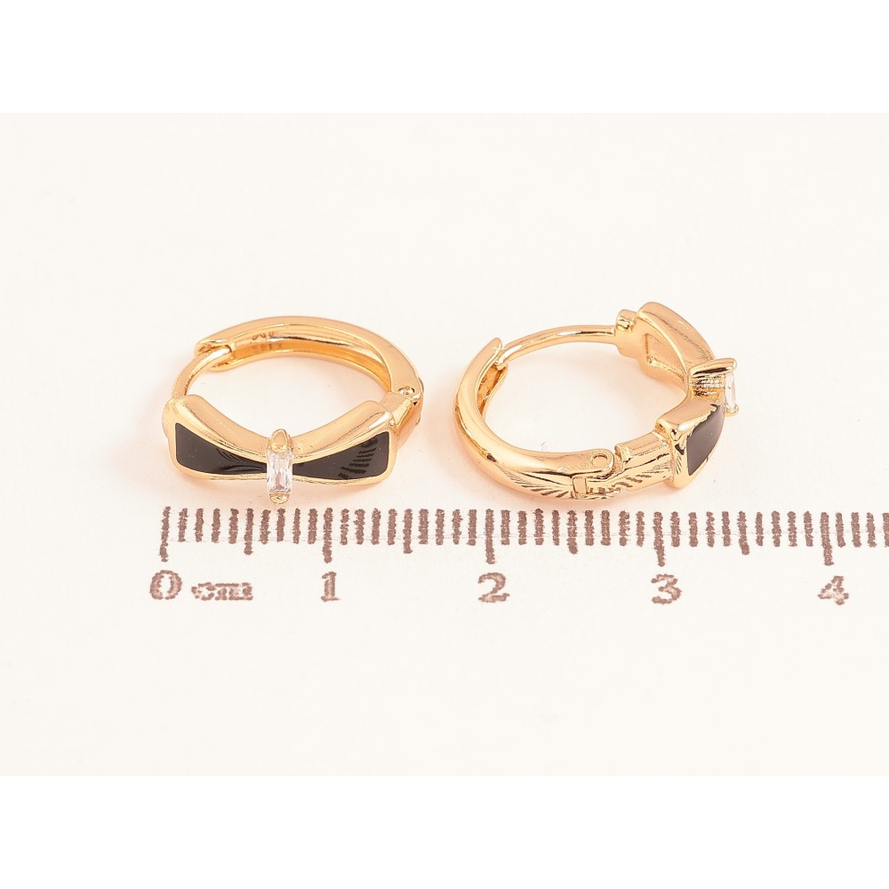 Серьги Xuping цвет Позолота 18К колечки "Банты с черной эмалью и кристаллами"