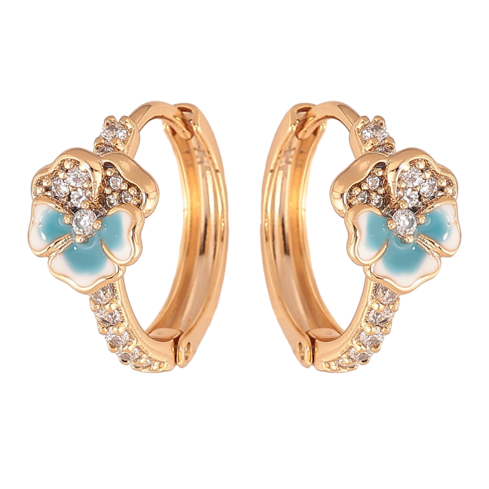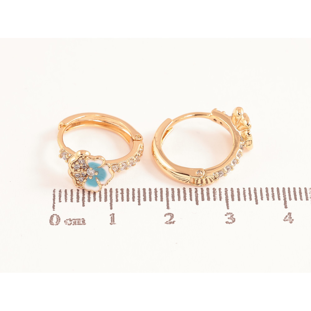 Серьги Xuping цвет позолота 18К колечки голубые цветочки с эмалью и кристаллами