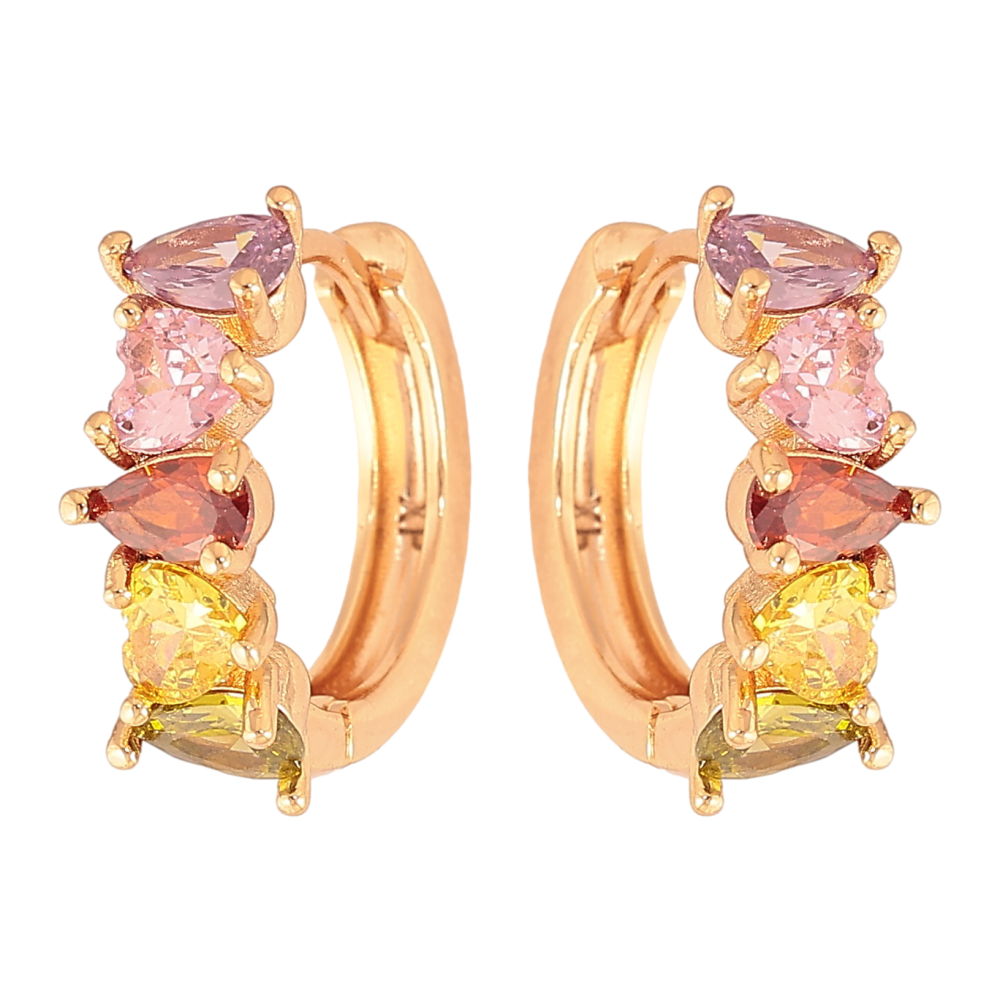Серьги Xuping цвет Позолота 18К колечки "Дорожка разноцветных сердечек"