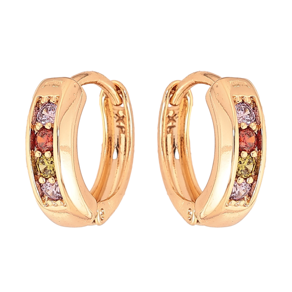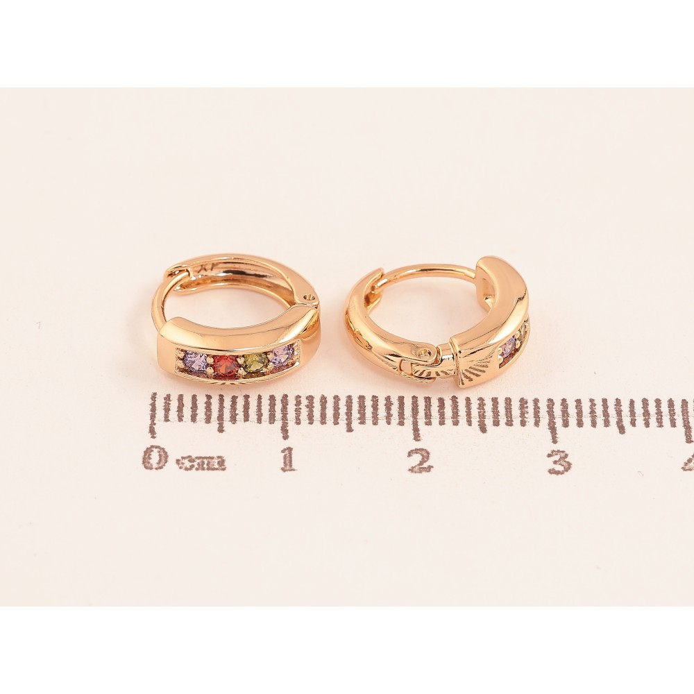 Серьги Xuping цвет Позолота 18К колечки "Дорожки разноцветных кристаллов"