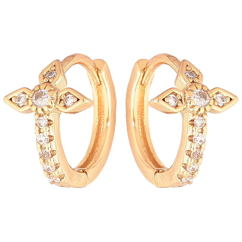 Серьги Xuping цвет Позолота 18К колечки "Крестики с кристаллами"