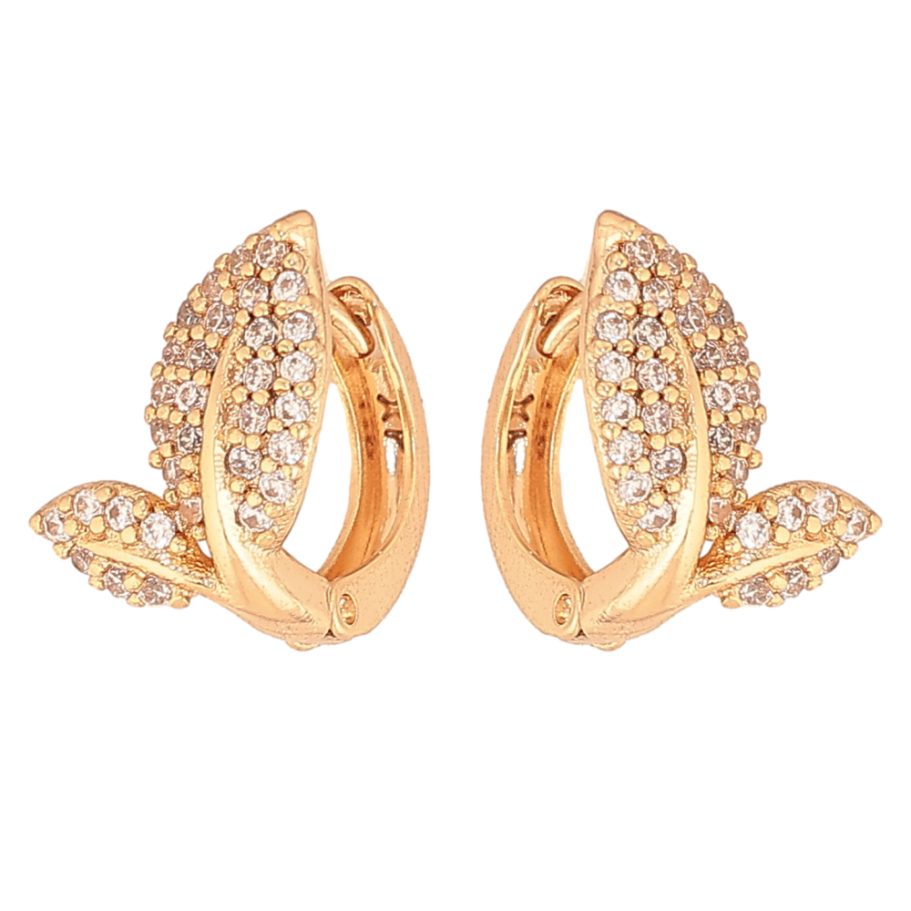 Серьги Xuping цвет Позолота 18К колечки "Листики с инкрустацией кристаллами"