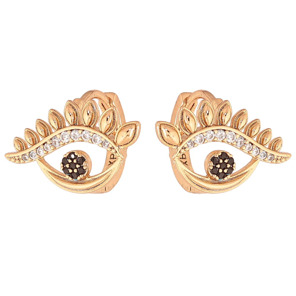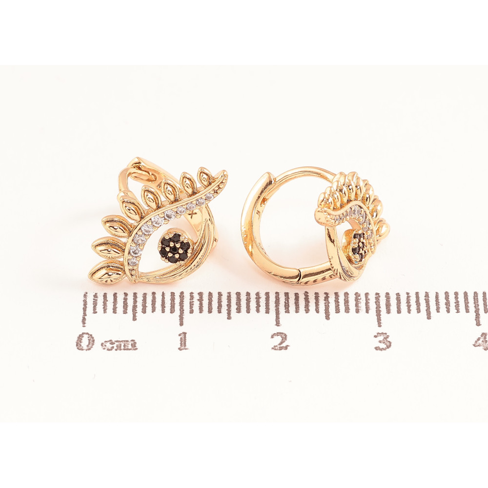 Серьги Xuping цвет позолота 18К колечки глаза с черными кристаллами