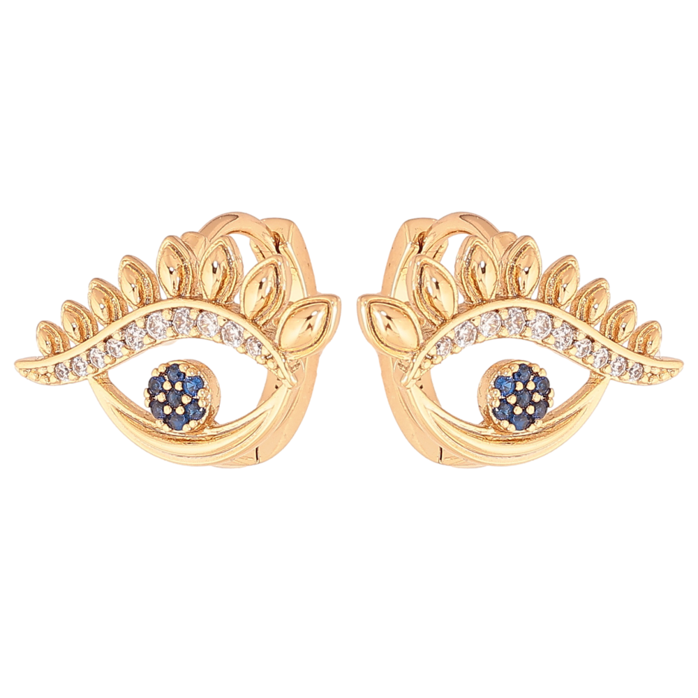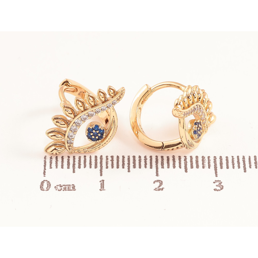 Серьги Xuping цвет позолота 18К колечки глаза с синими кристаллами