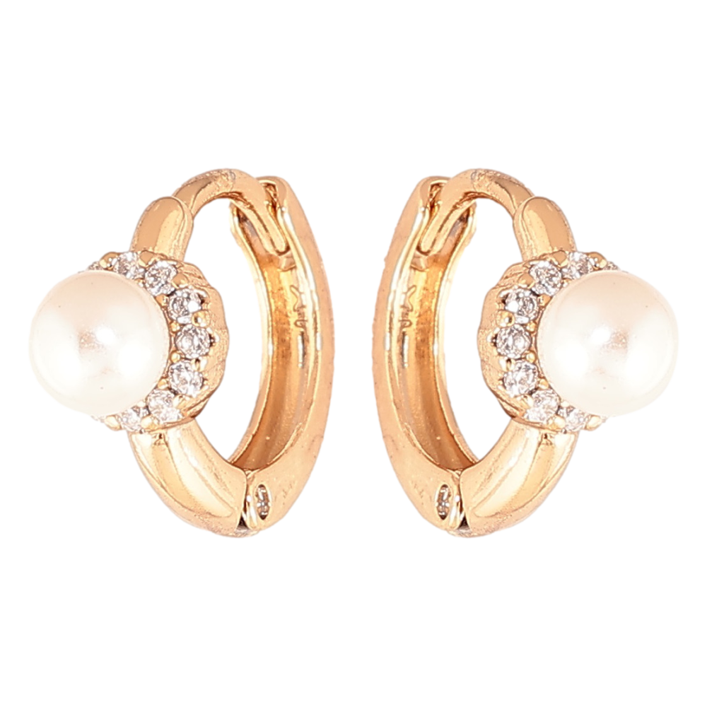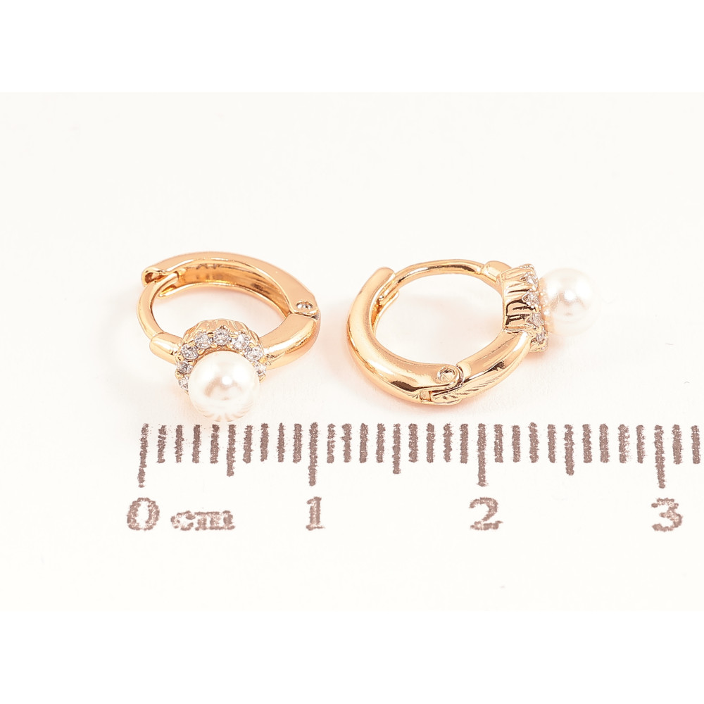 Серьги Xuping цвет позолота 18К колечки жемчужины в обрамлении кристаллов