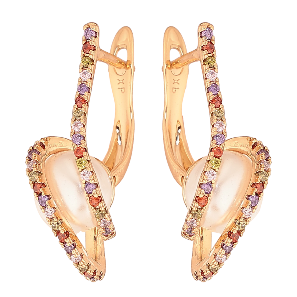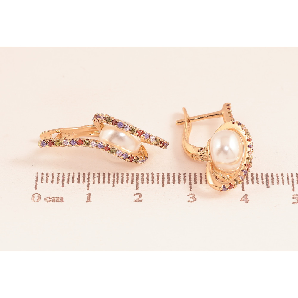 Серьги Xuping цвет Позолота 18К английський замок "Жемчужины с дорожками разноцветных кристаллов"