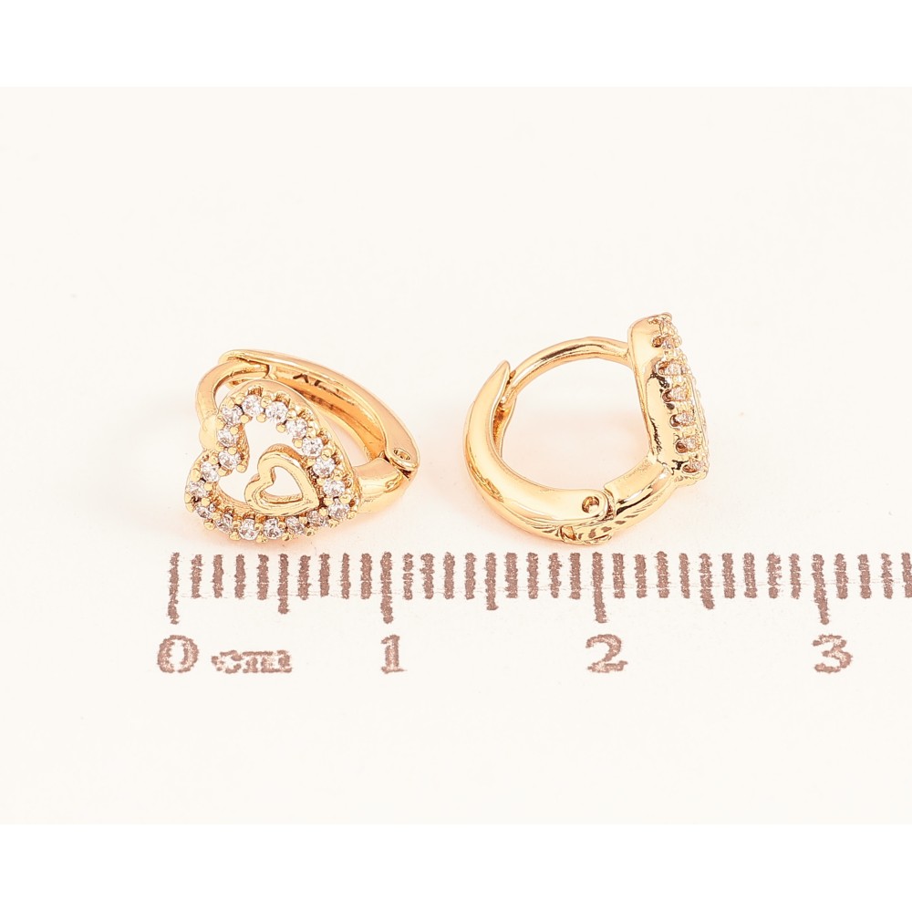 Серьги Xuping цвет Позолота 18К колечки "Сердечки с кристаллами"
