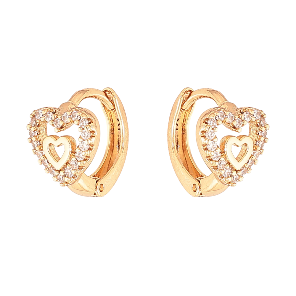 Серьги Xuping цвет Позолота 18К колечки "Сердечки с кристаллами" фото №1