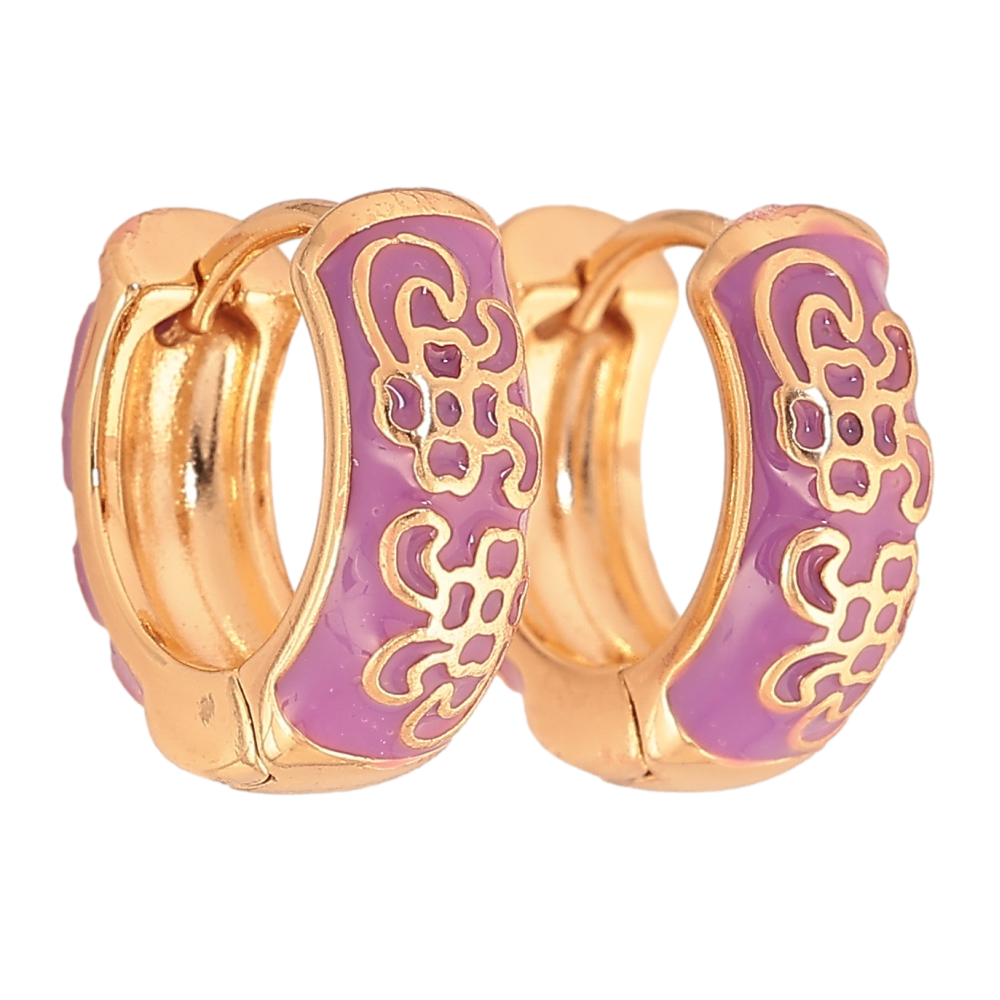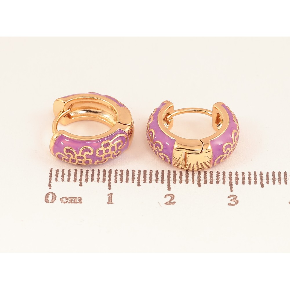 Серьги Xuping цвет Позолота 18К колечки "Узор с сиреневой эмалью"