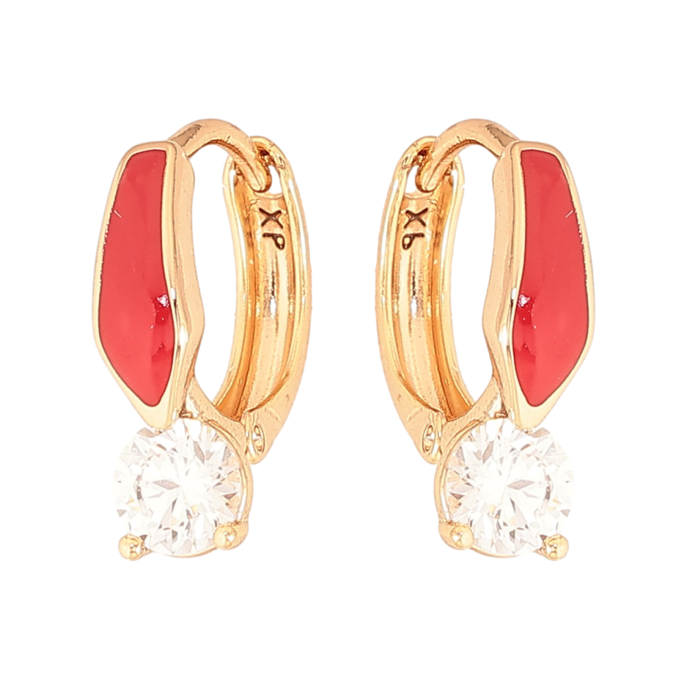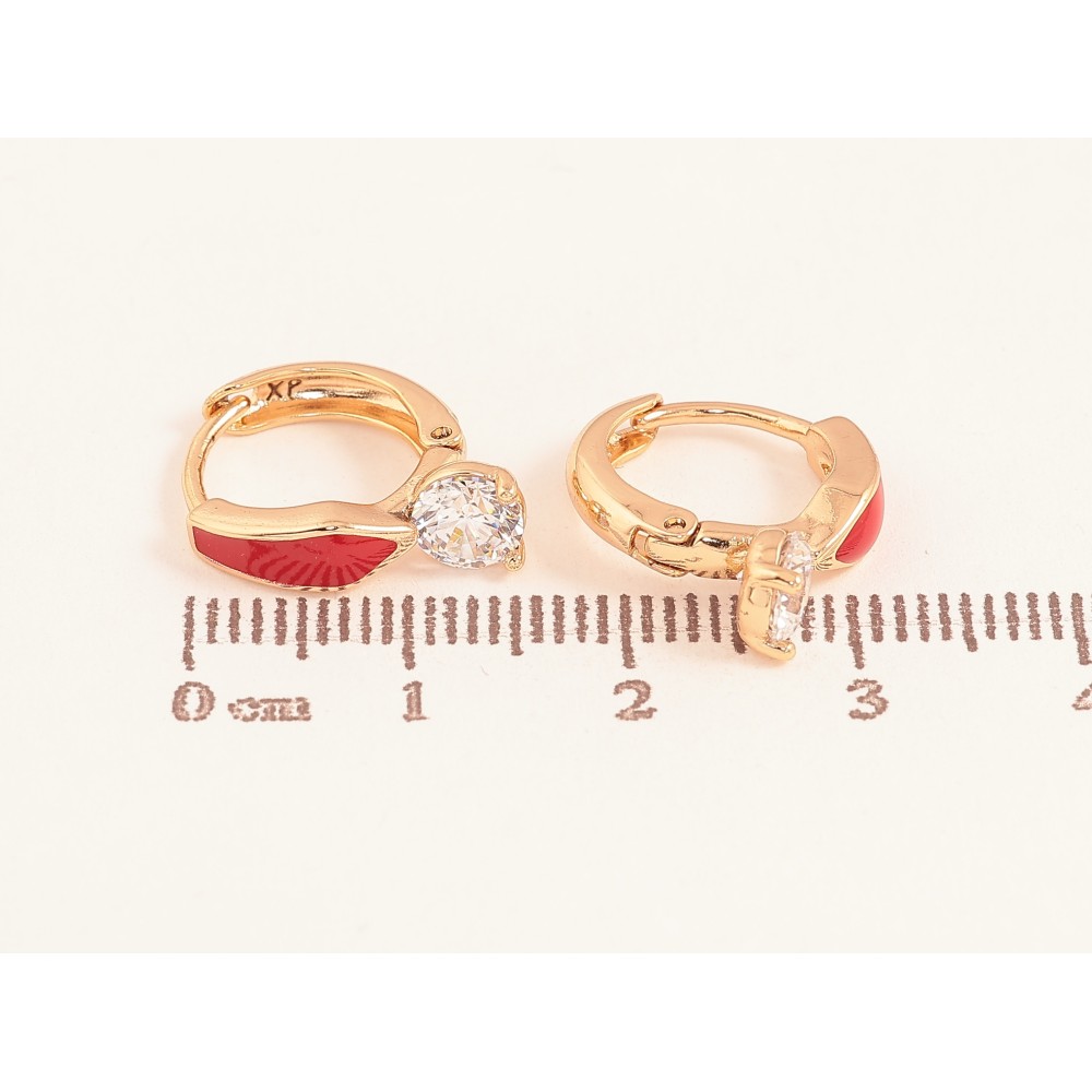 Серьги Xuping цвет Позолота 18К колечки "Узор с красной эмалью и кристаллом"
