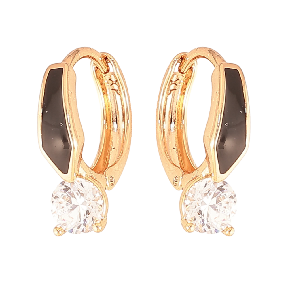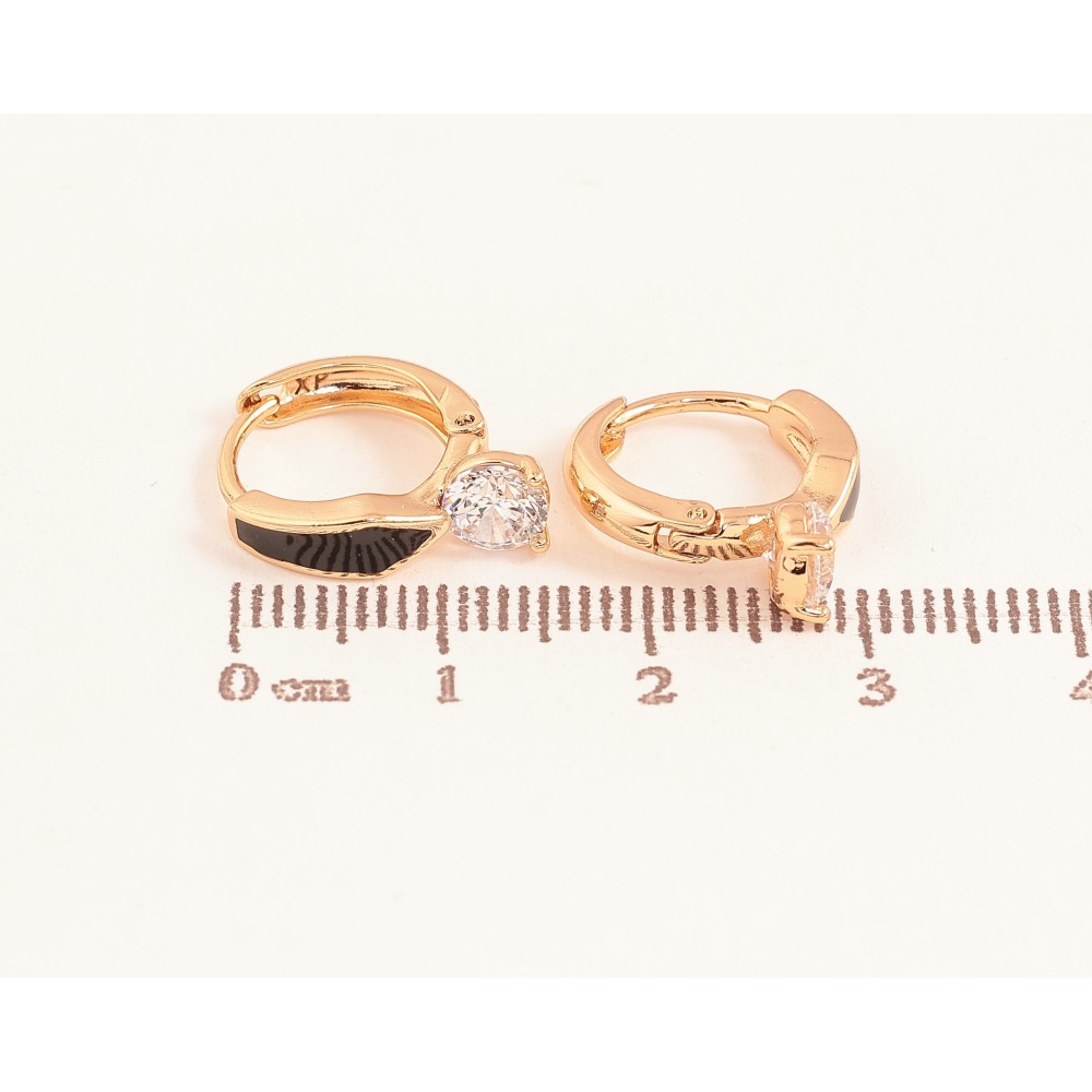 Серьги Xuping цвет Позолота 18К колечки "Узор с черной эмалью и кристаллом"