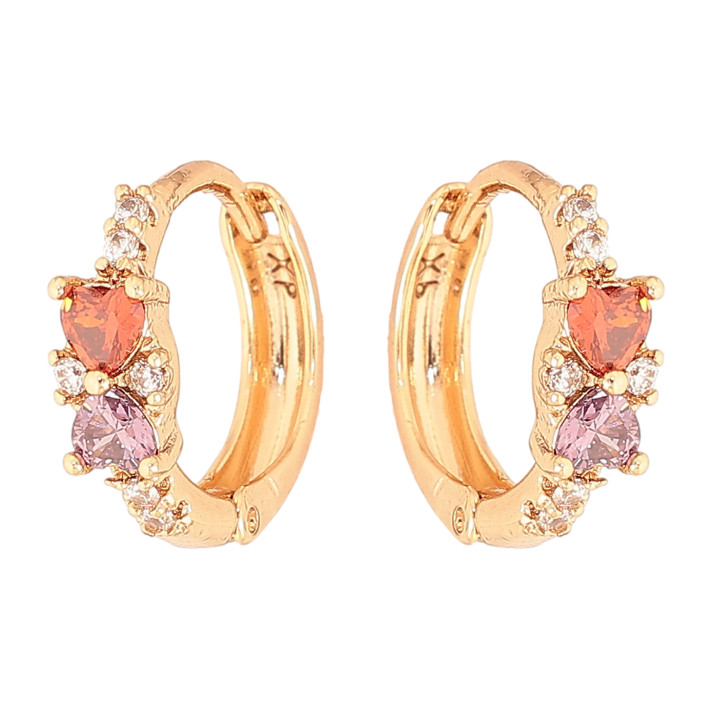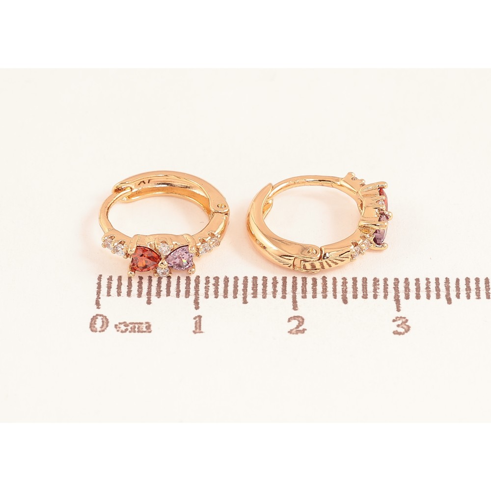 Серьги Xuping цвет Позолота 18К колечки "Узор с цветными кристальными сердечками"
