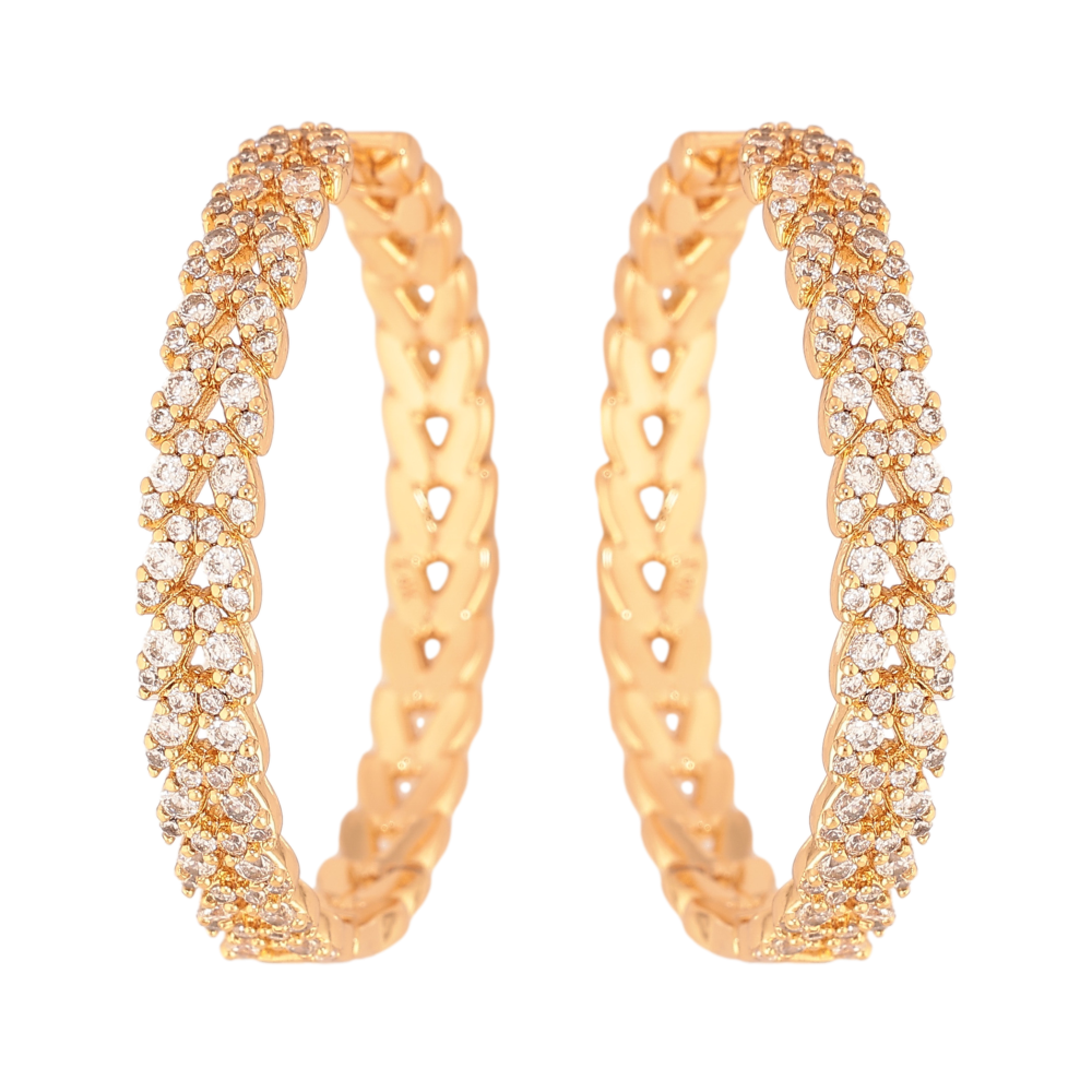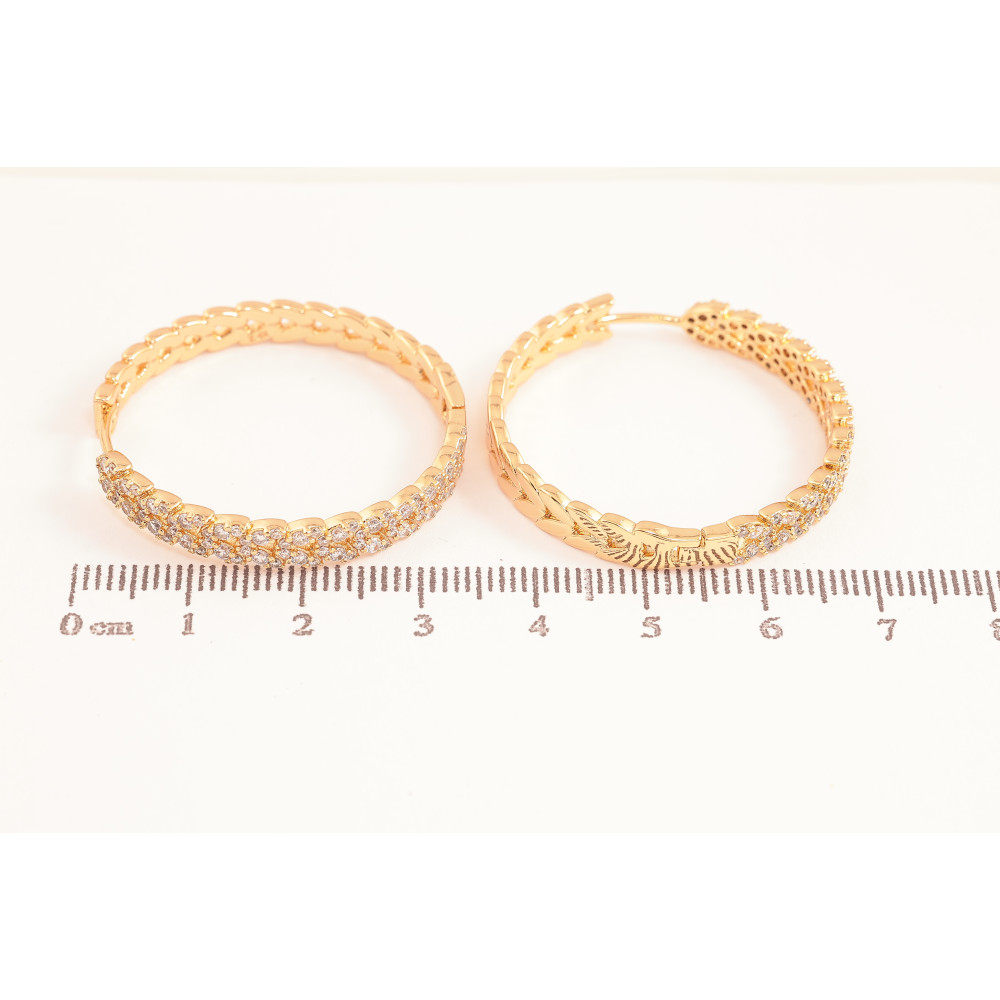Серьги Xuping цвет Позолота 18К колечки "Узор с кристаллами" ø 3.3см