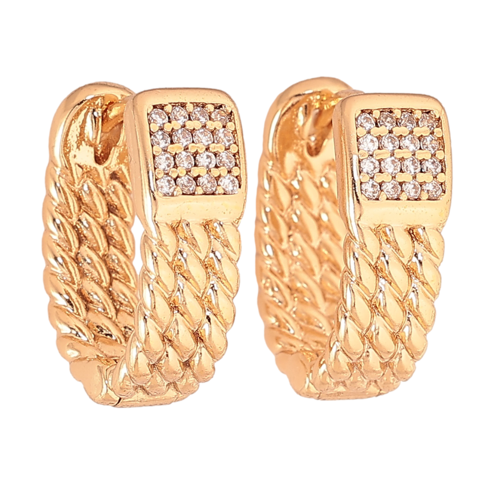 Серьги Xuping цвет Позолота 18К колечки "Узор с кристаллами" фото №1