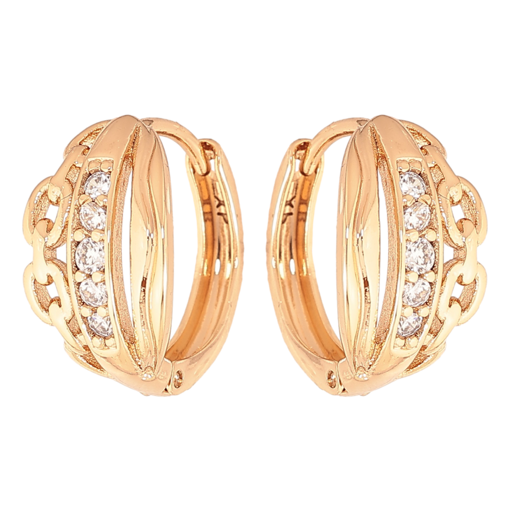 Серьги Xuping цвет Позолота 18К колечки "Узор с кристаллами" фото №1