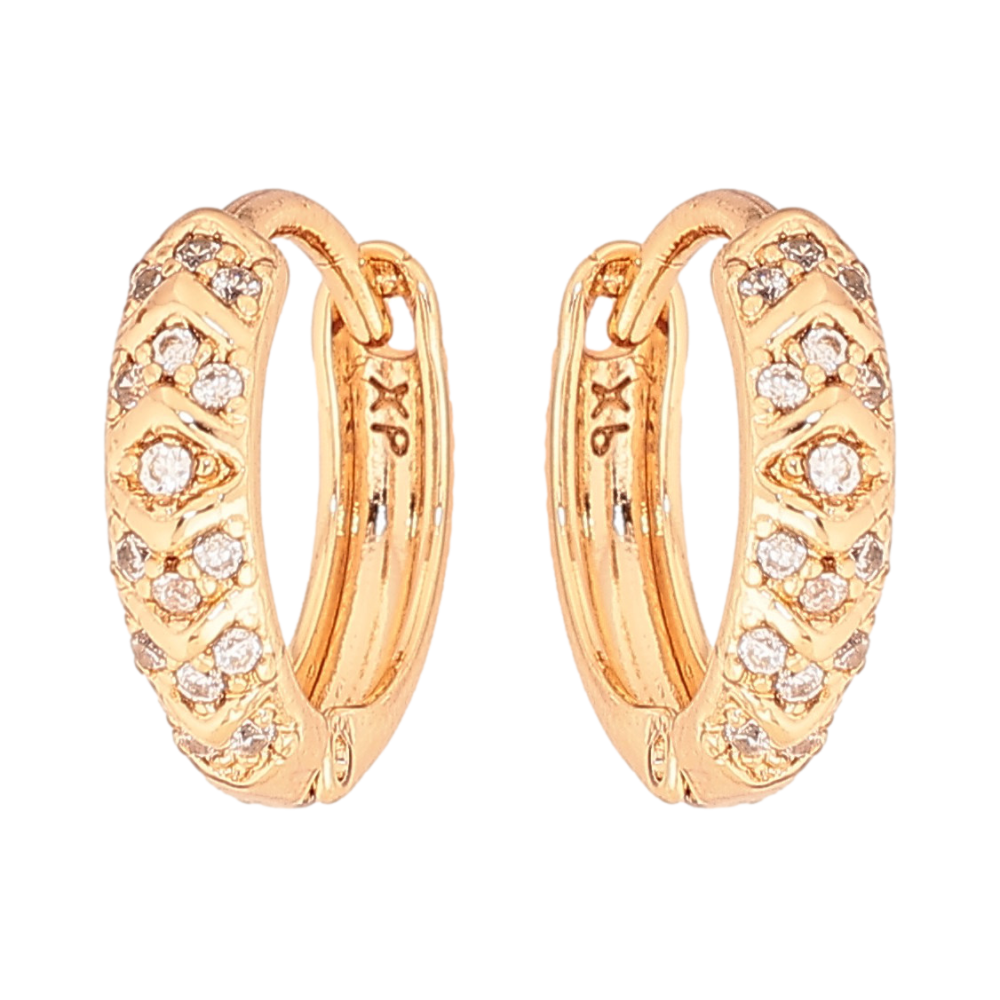 Серьги Xuping цвет Позолота 18К колечки "Узор с кристаллами" фото №1