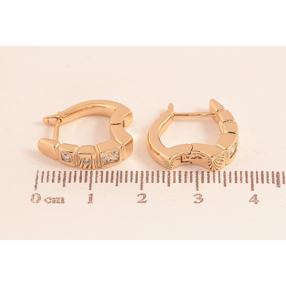 Серьги Xuping цвет Позолота 18К английський замок "Узор с кристаллами"