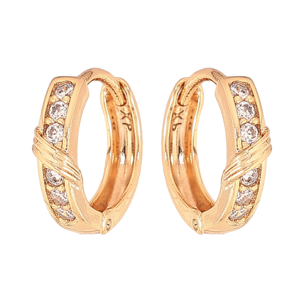 Серьги Xuping цвет Позолота 18К колечки "Узор с кристаллами" фото №1