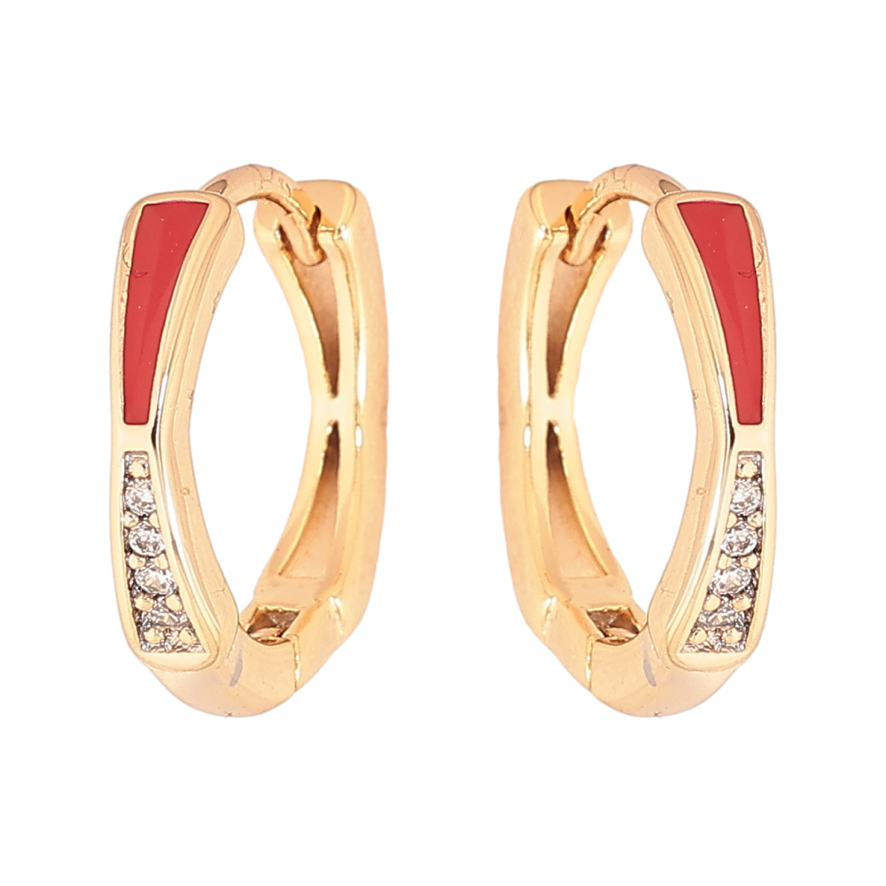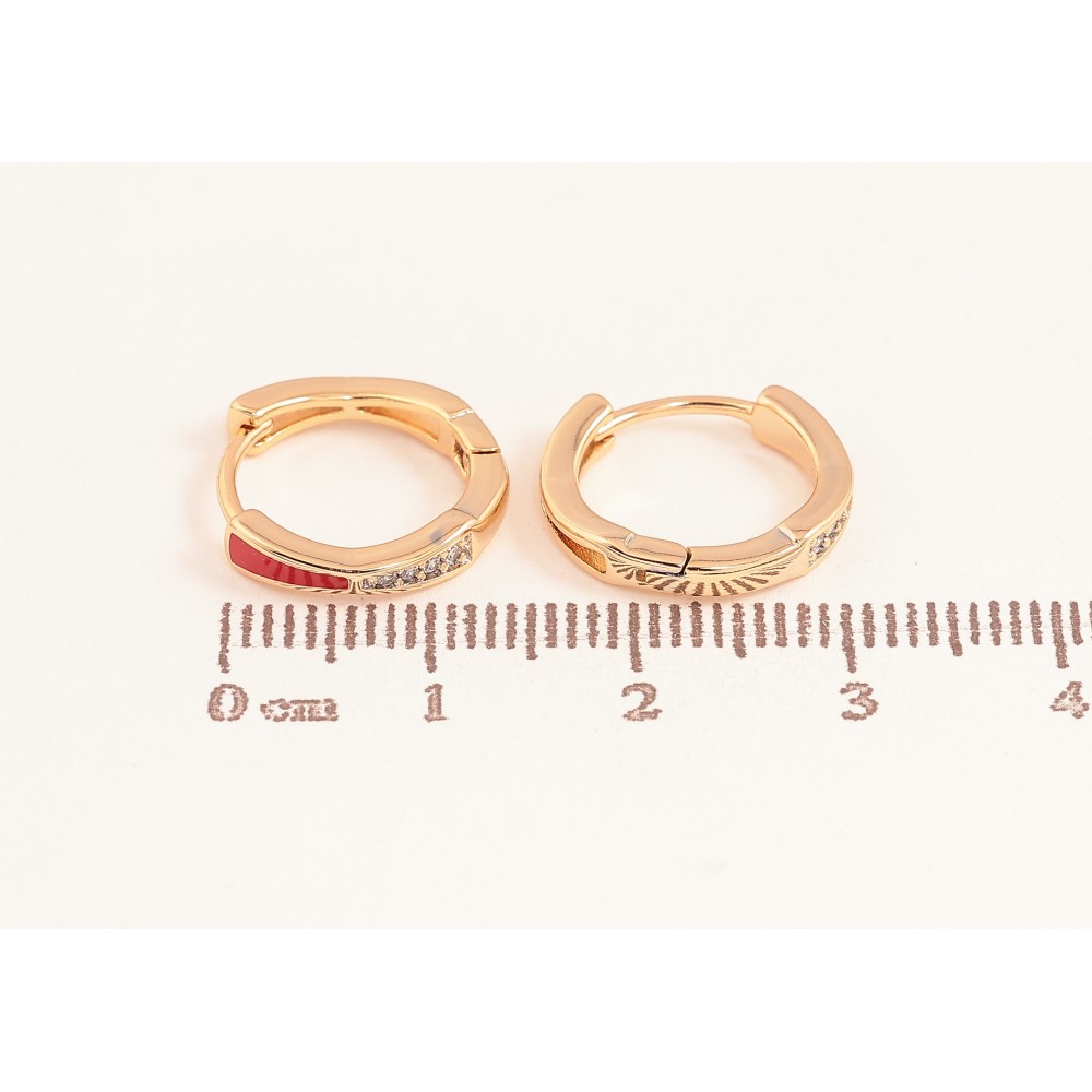 Серьги Xuping цвет Позолота 18К колечки "Узор с кристаллами и красной эмалью"