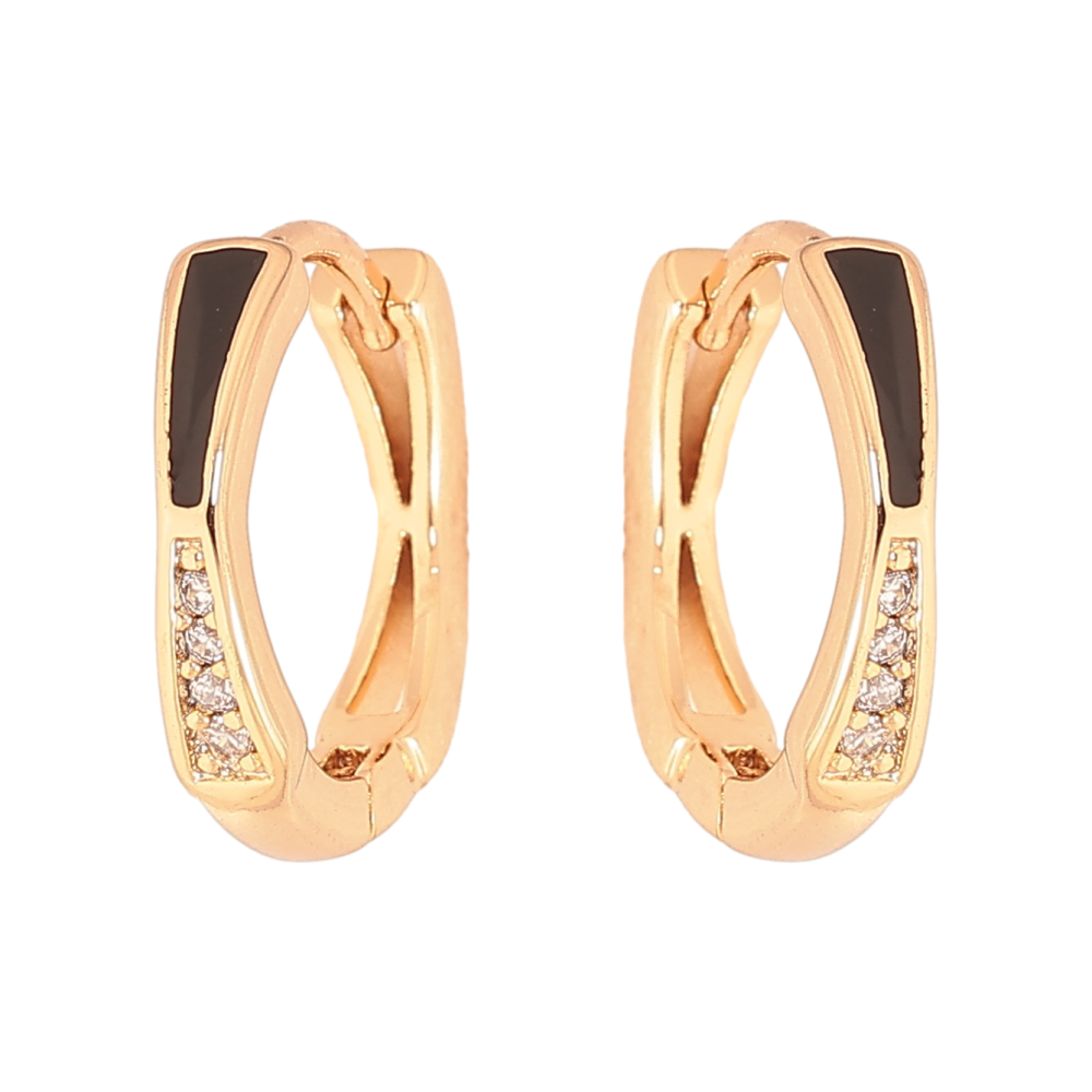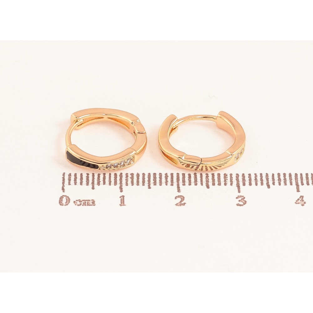 Серьги Xuping цвет Позолота 18К колечки "Узор с кристаллами и черной эмалью"