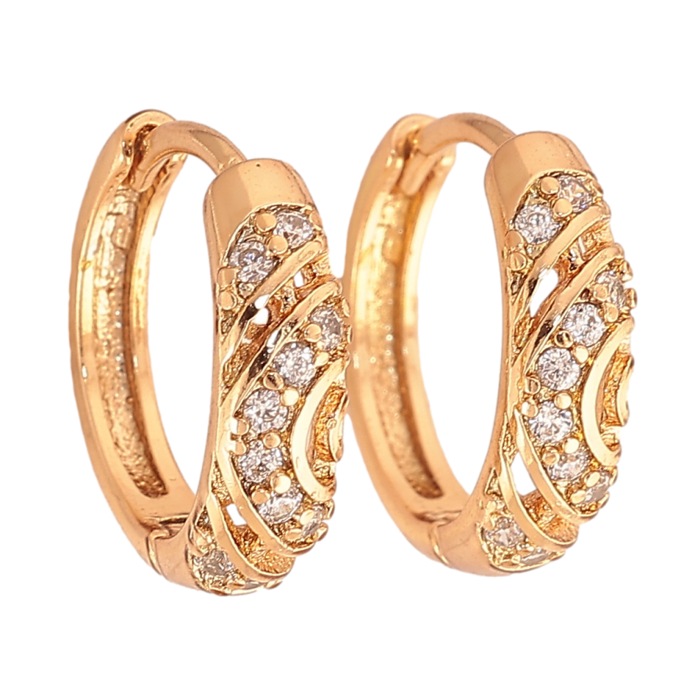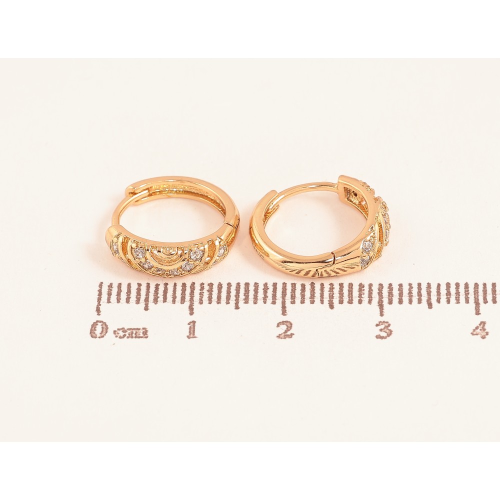 Серьги Xuping цвет Позолота 18К колечки "Узор с кристаллами" на одну сторону