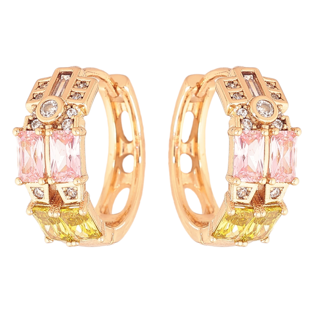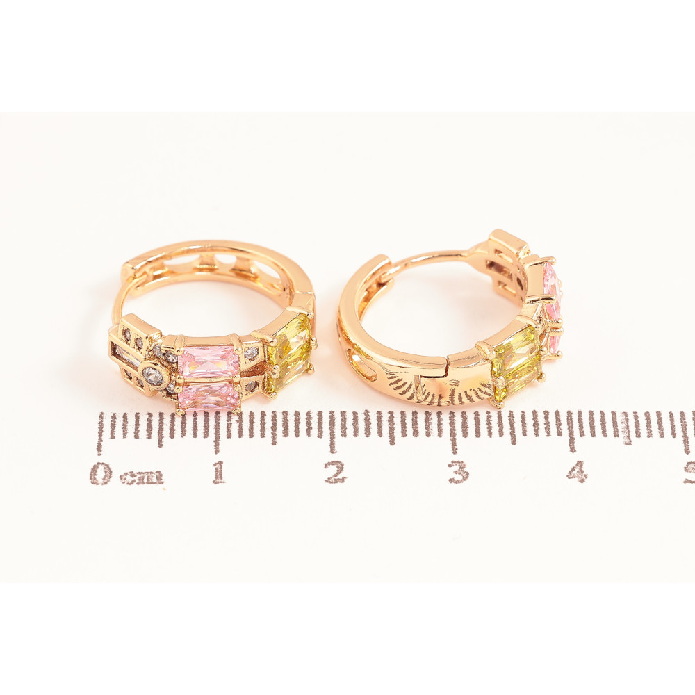 Серьги Xuping цвет Позолота 18К колечки "Узор с разноцветными кристаллами"
