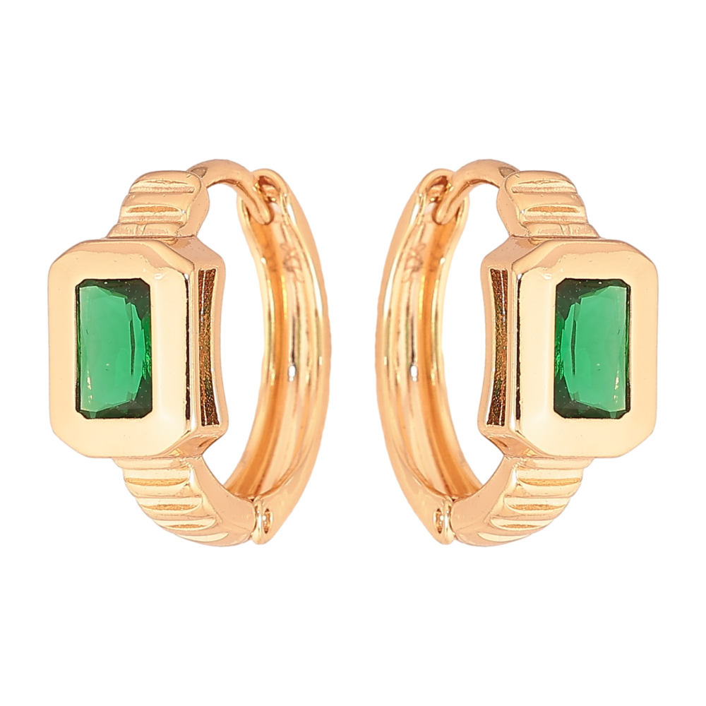 Серьги Xuping цвет Позолота 18К колечки "Вставка зеленый кристалл"