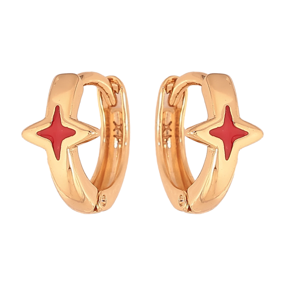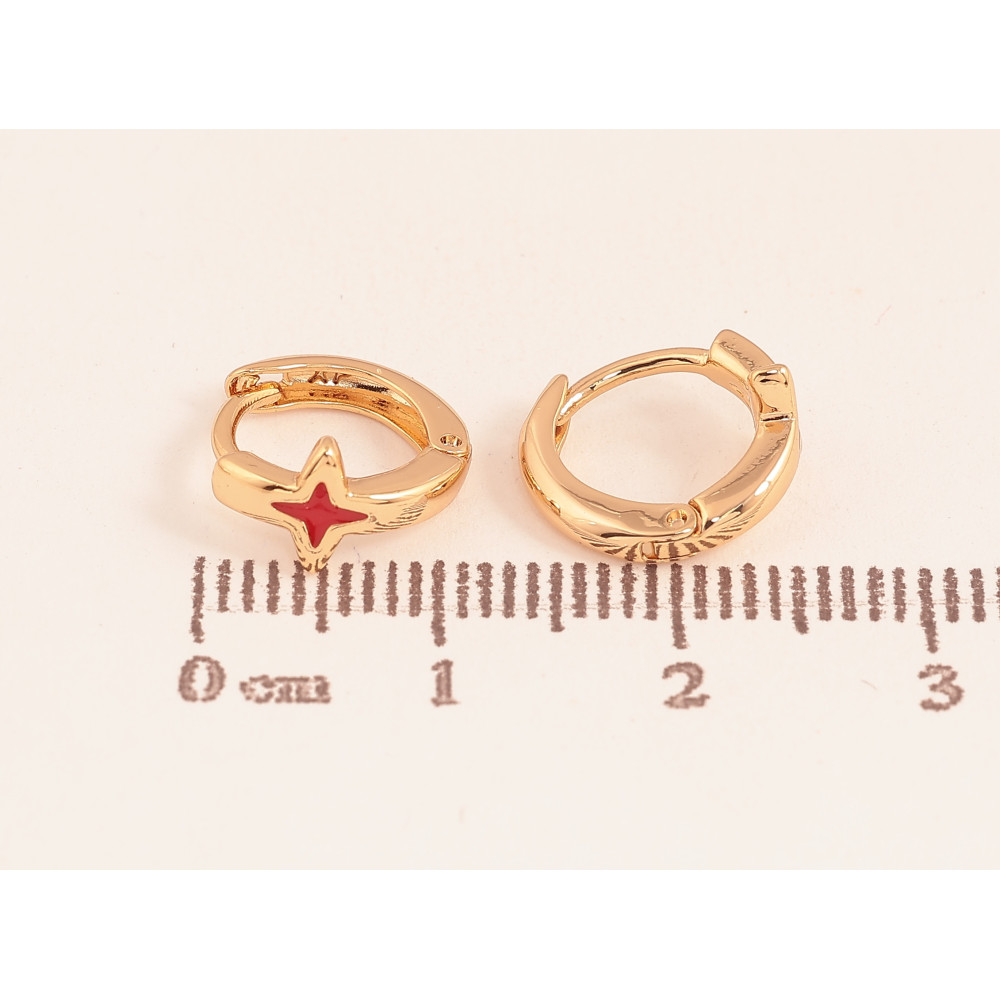 Серьги Xuping цвет Позолота 18К колечки "Звезды с красной эмалью"