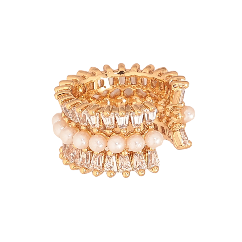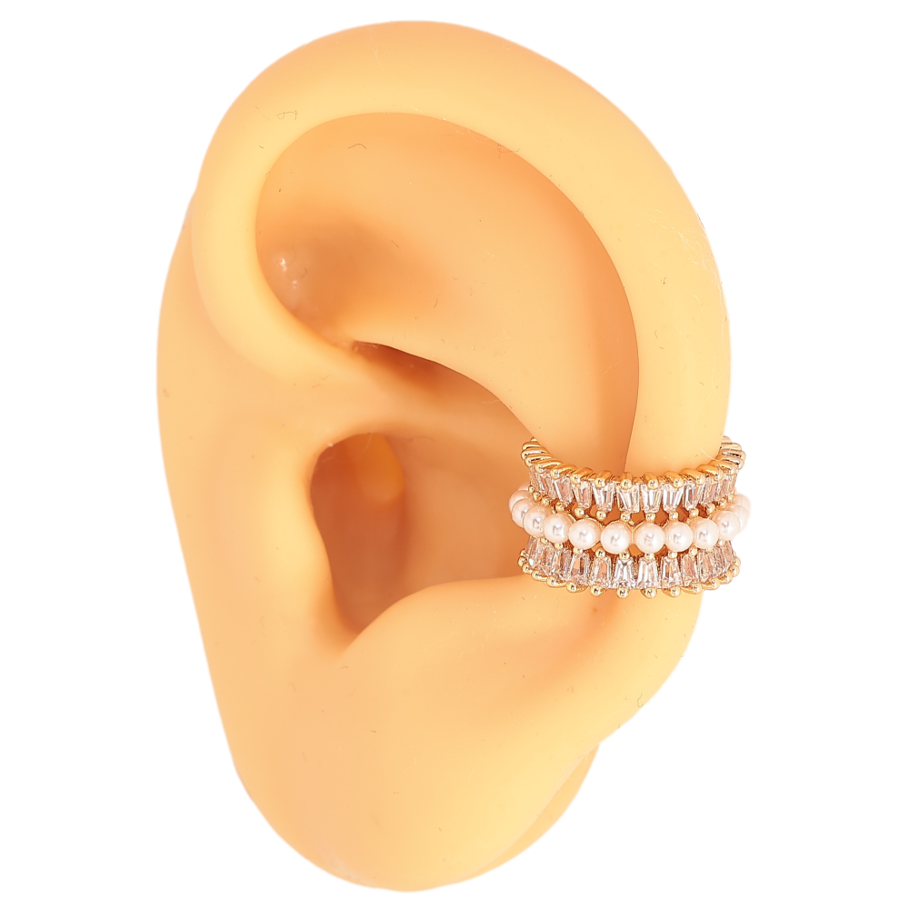 Серьги Xuping цвет Позолота 18K моно-каффа "Узор с кристаллами и жемчужинами"