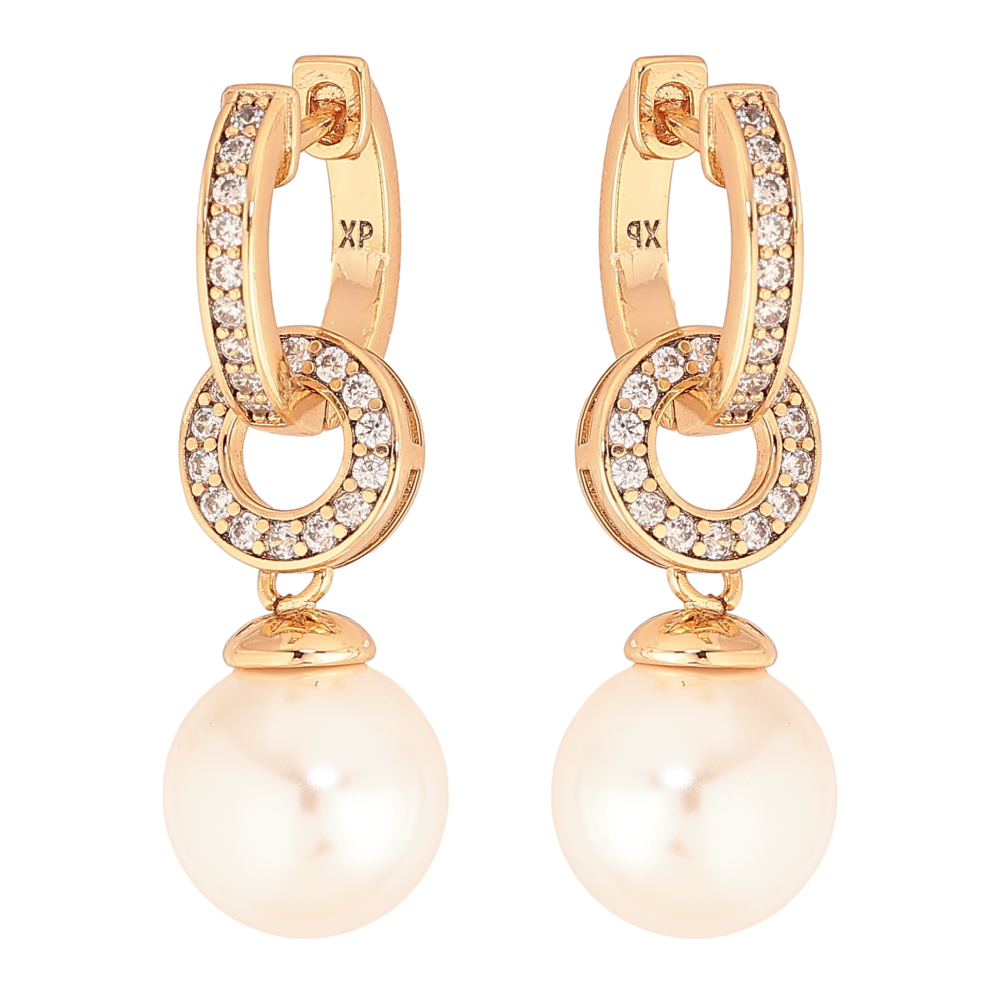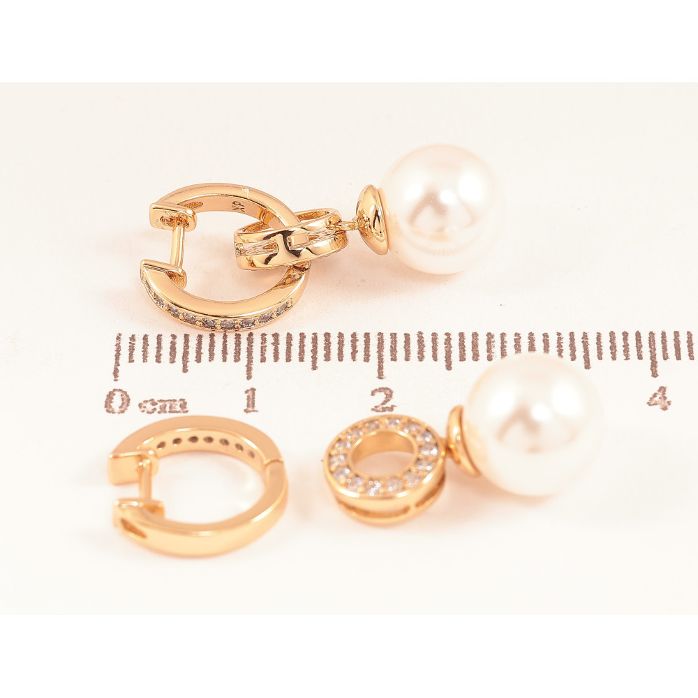 Серьги Xuping цвет Позолота 18К подвески на колечках "Жемчужные подвески" 2 в 1