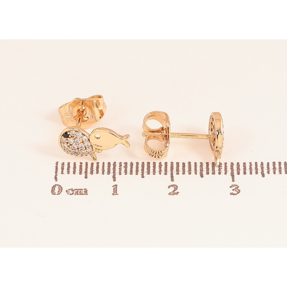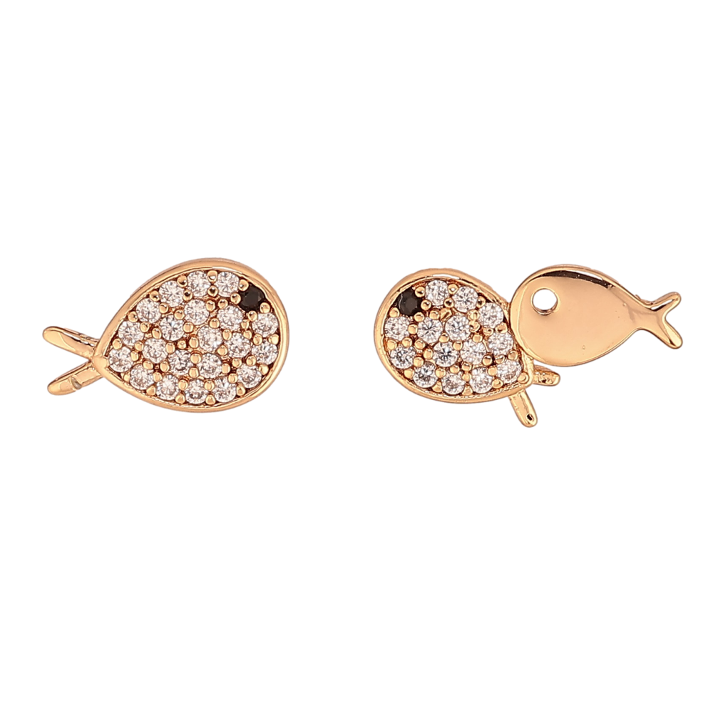 Серьги Xuping цвет Позолота 18К пусеты "Ассиметричные рыбки с кристаллами"