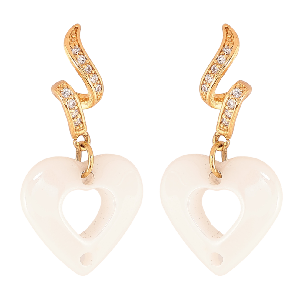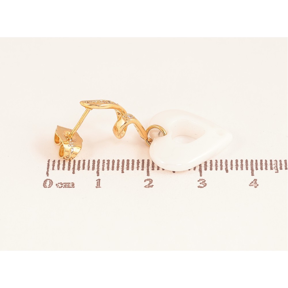 Серьги Xuping цвет Позолота 18К пусеты "Белые керамические сердечки"