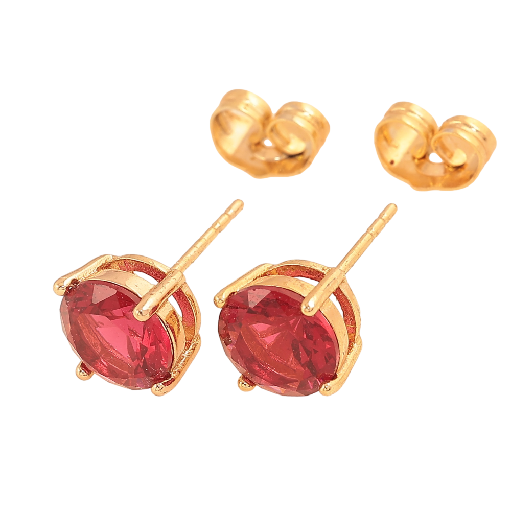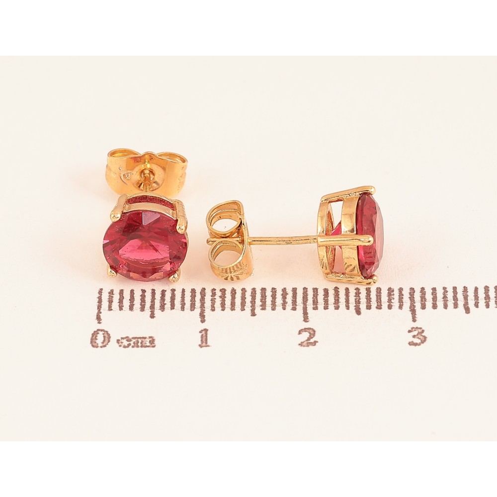 Серьги Xuping цвет Позолота 18К пусеты "Красные кристаллы в 4-х крапановой оправе" ø 8мм