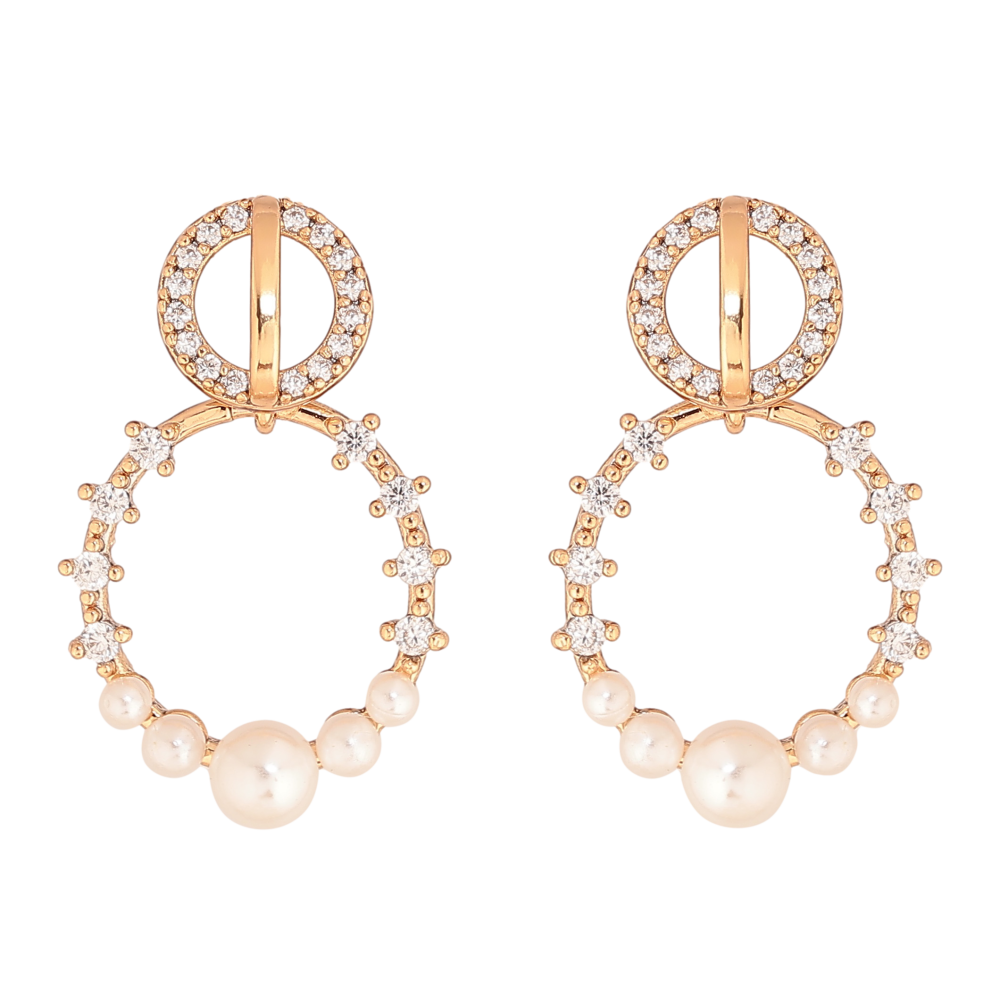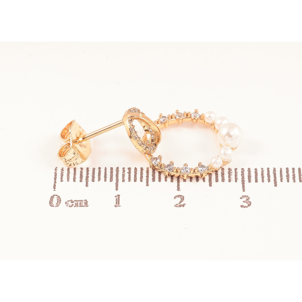 Серьги Xuping цвет Позолота 18К пусеты "Колечки с кристаллами и жемчужинами"