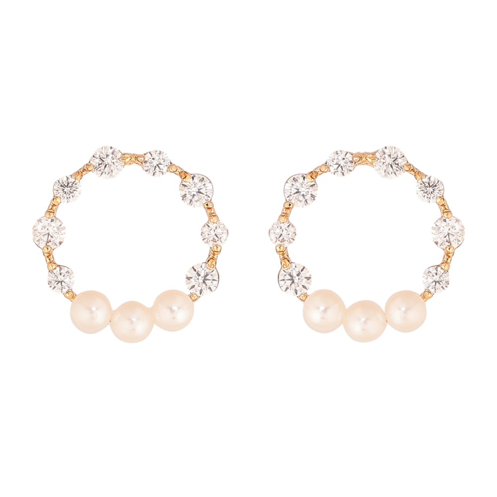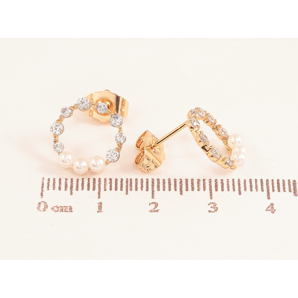 Серьги Xuping цвет Позолота 18К пусеты "Колечки с кристаллами и жемчужинами"