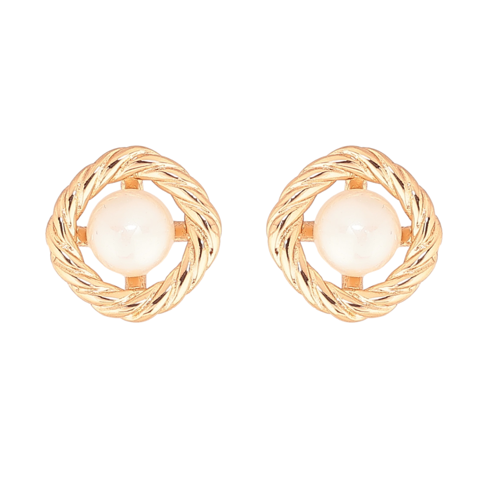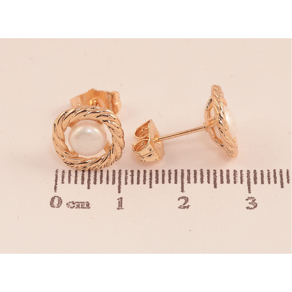 Серьги Xuping цвет Позолота 18К пусеты "Колечки с жемчужинами"