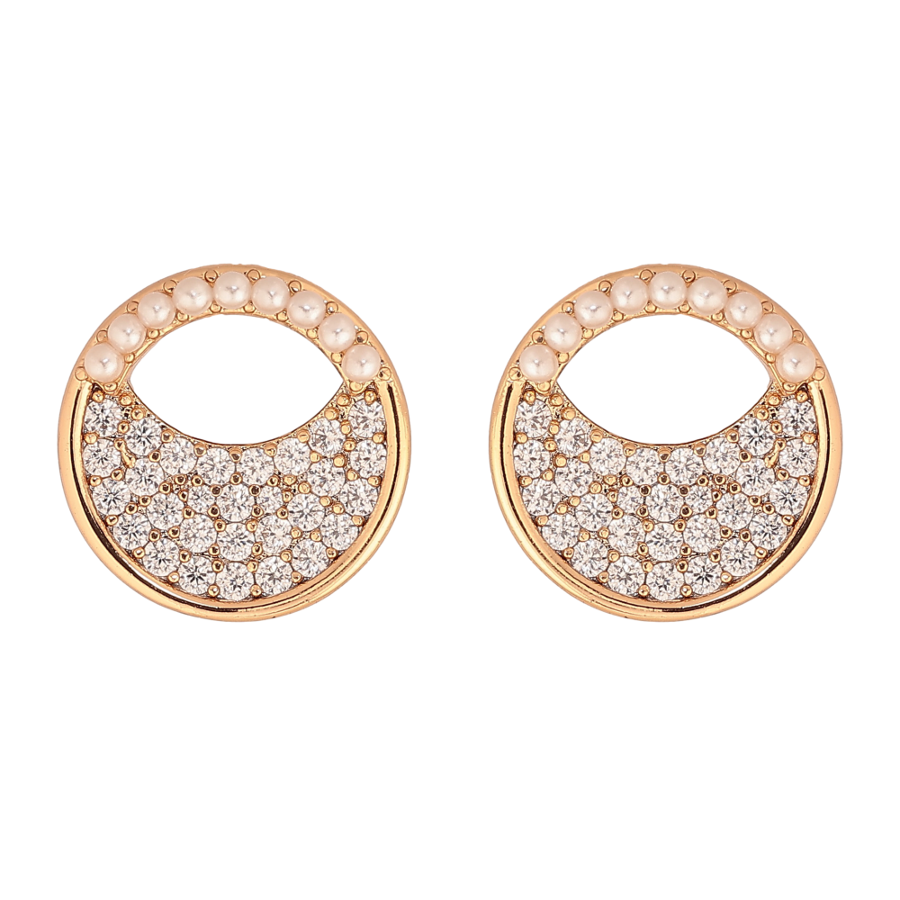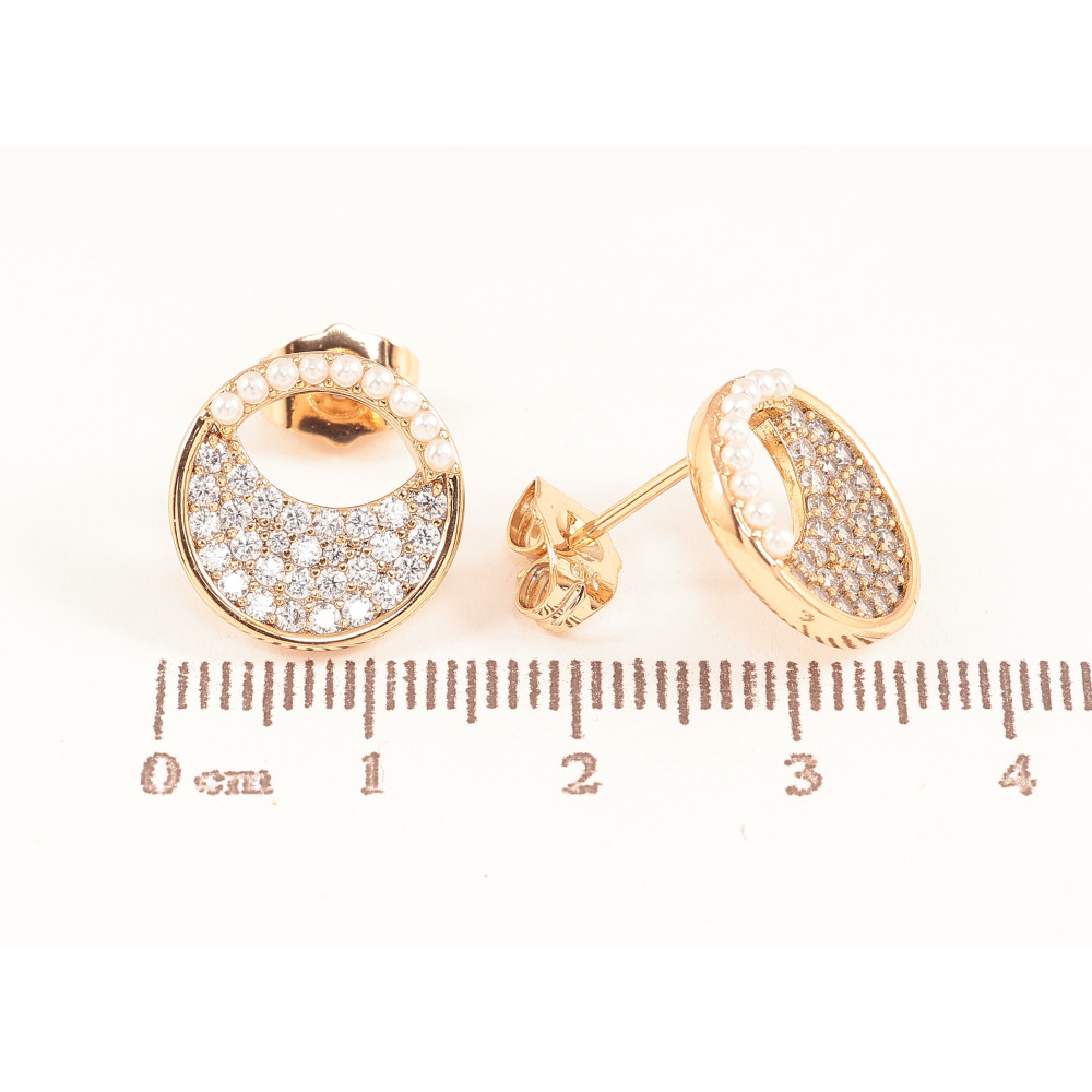 Серьги Xuping цвет Позолота 18К пусеты "Круглые с инкрустацией кристаллами и жемчужинками"