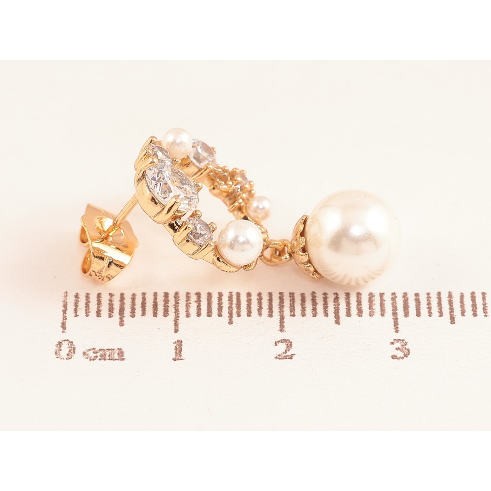 Серьги Xuping цвет Позолота 18К пусеты "Кристальные колечки с жемчужинами" фото №2