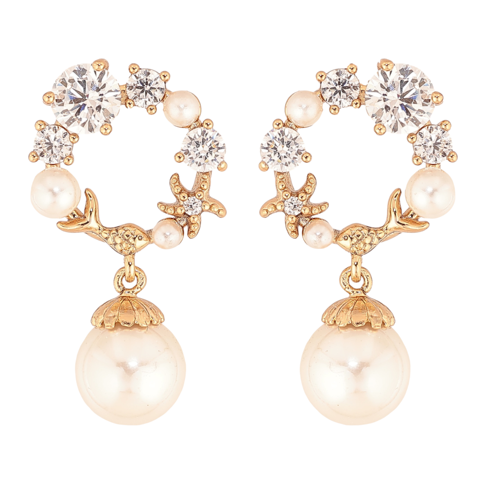 Серьги Xuping цвет Позолота 18К пусеты "Кристальные колечки с жемчужинами"