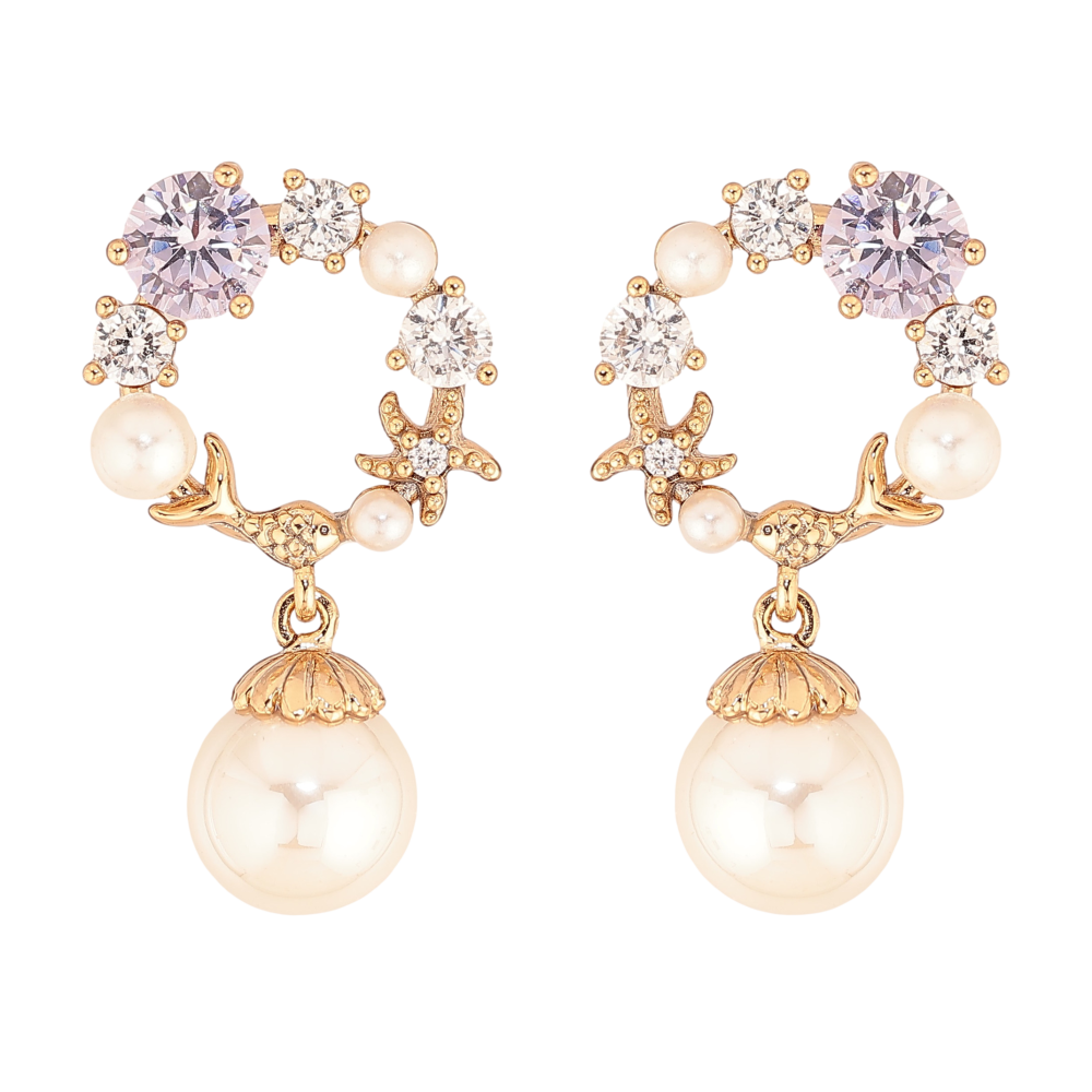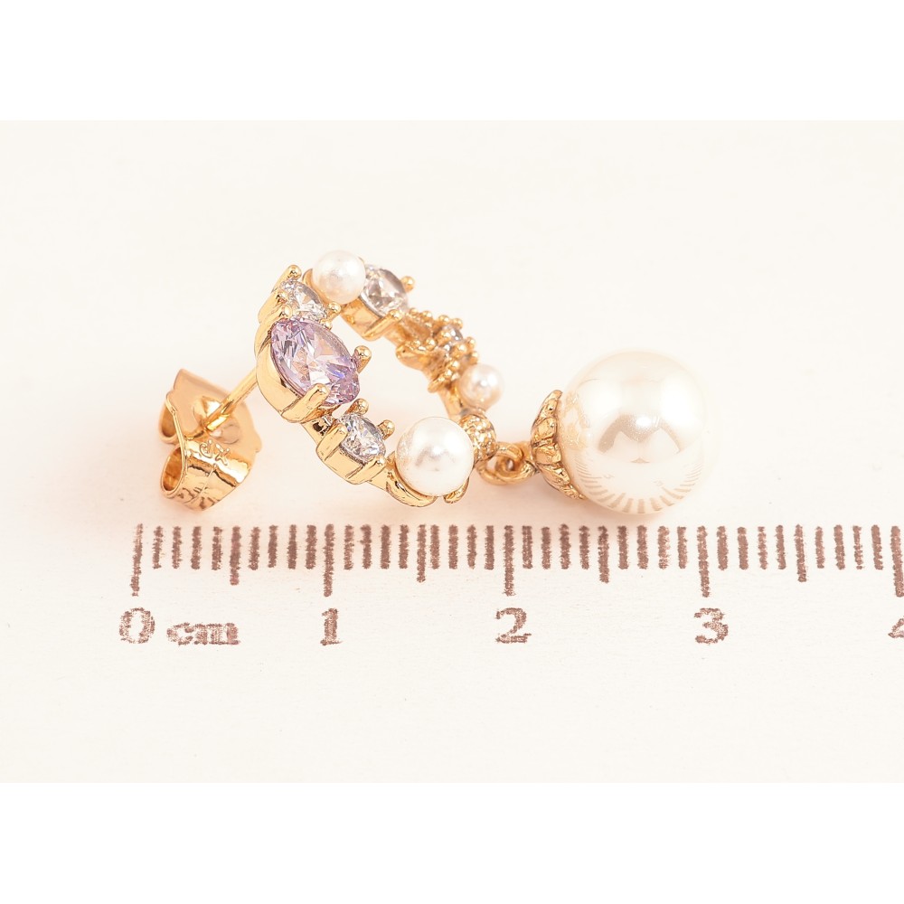 Серьги Xuping цвет Позолота 18К пусеты "Кристальные колечки с жемчужинами"