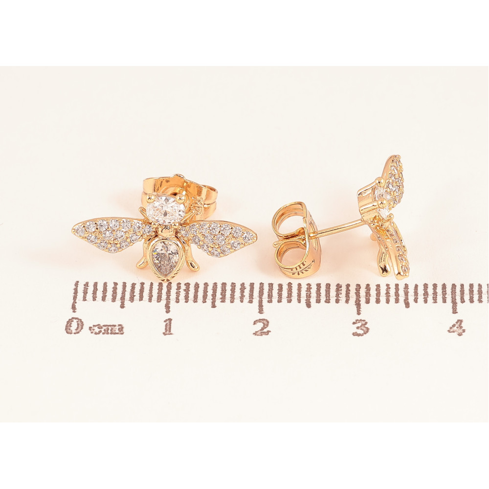 Серьги Xuping цвет Позолота 18К пусеты "Кристальные мушки" фото №1
