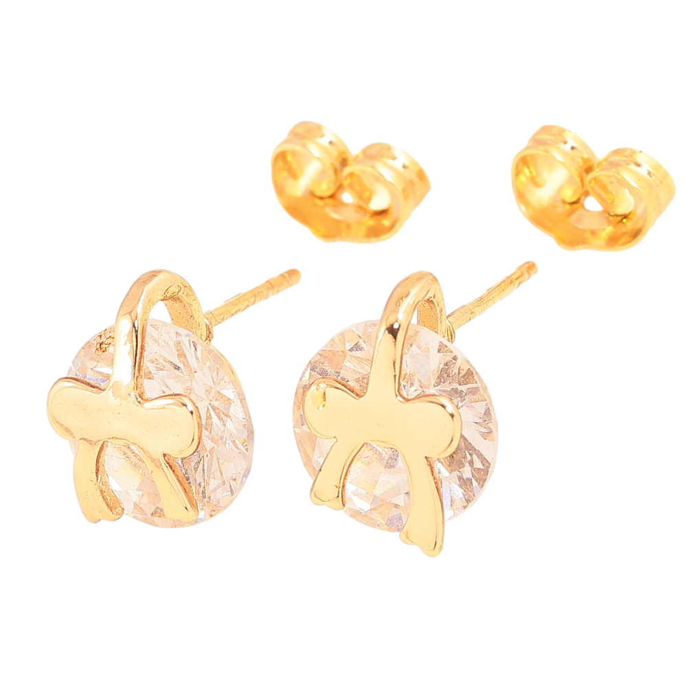 Серьги Xuping цвет Позолота 18К пусеты "Кристаллы с бантами" фото №1
