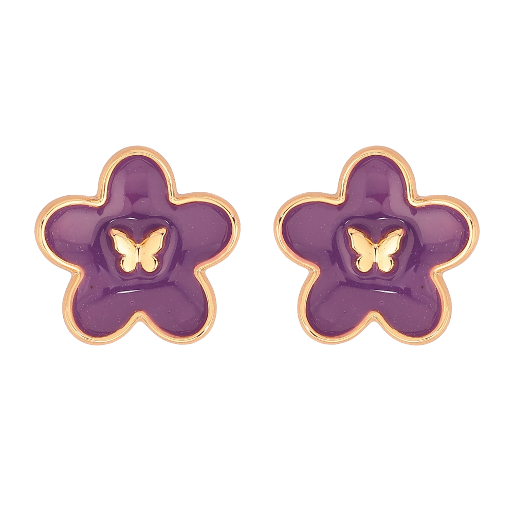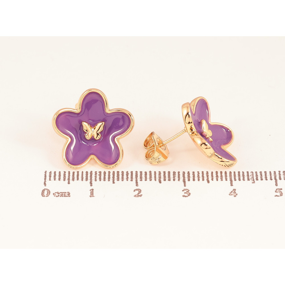 Серьги Xuping цвет Позолота 18К пусеты "Цветочки с сиреневой эмалью"