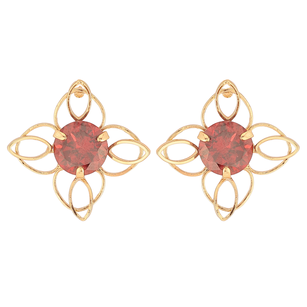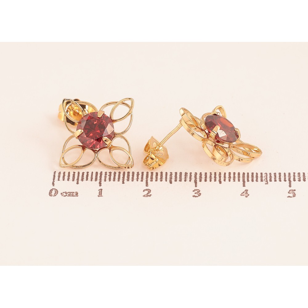 Серьги Xuping цвет Позолота 18К пусеты "Цветочки с красными кристаллами"