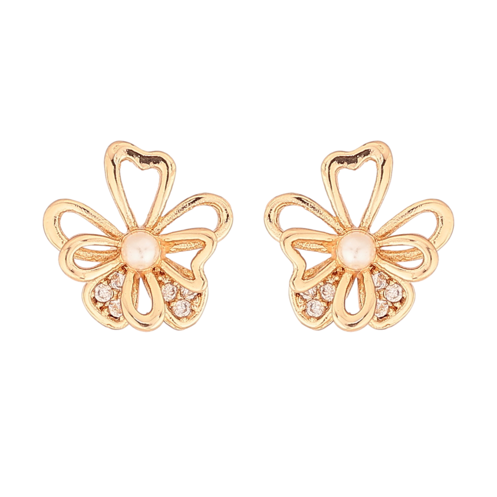 Серьги Xuping цвет Позолота 18К пусеты "Цветочки с кристаллами и жемчужинками"