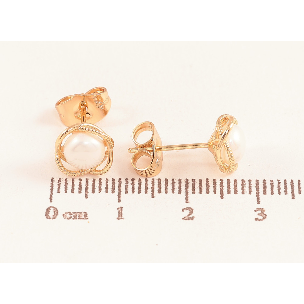 Серьги Xuping цвет Позолота 18К пусеты "Цветочки с жемчужинами"